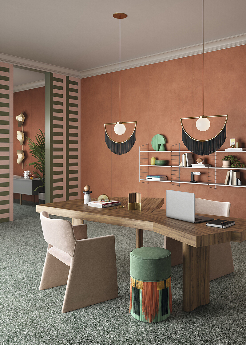 Con Pigmenti, nata dalla collaborazione con Ferruccio Laviani, la ceramica diventa materia pura al servizio del colore. La risultante è una struttura fine, dove leggeri movimenti grafici danno al colore profondità e dinamicità. 12 le varianti colore proposte, studiate da Laviani unendo l’analisi metodica delle tendenze cromatiche di architettura e interior alla sua personale sensibilità verso i colori più espressivi e naturali. Il risultato è una gamma dai toni contemporanei, ispirati alle cromie naturali e al tempo stesso alle nuance più ricercate, pensati per essere facilmente combinati tra loro, oltre che alle altre collezioni del brand, così da consentire massima libertà espressiva. Ad esempio, le nuances Canyon e Sunset restituiscono perfettamente l’effetto Apricot Crush. Pigmenti, grazie alla tecnologia Slimtech 3plus, è come una seconda pelle ceramica di soli 3,5mm in lastre di grande formato (3x1m) estremamente leggere, e, soprattutto, completamente Carbon Neutral: oltre ad aver ridotto in fase produttiva il consumo di materie prime, di energia, di acqua nonché le emissioni di anidride carbonica e l’inquinamento da trasporto, grazie al progetto THINk ZERO, le emissioni residue di CO2 dell’intero ciclo di vita del prodotto sono state completamente compensate.