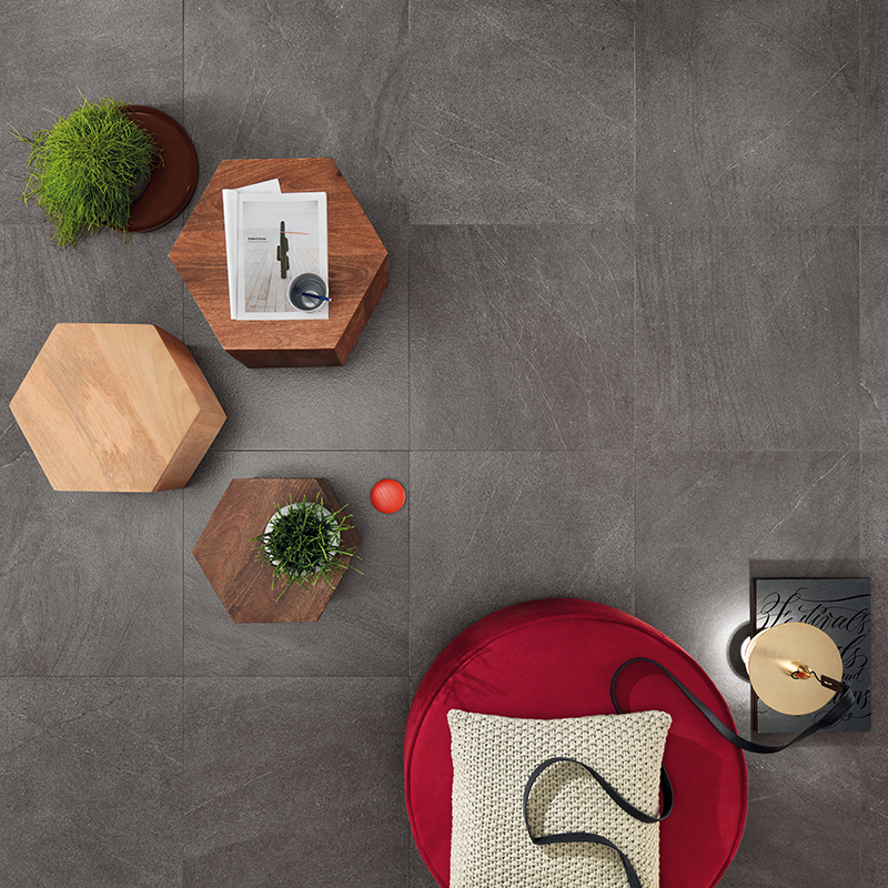 Certi effetti ceramici (come il look cemento) sono così realistici da invogliare a scegliere, per il pavimento, piastrelle di grandi formati senza fuga. Attenzione, però: è un errore da non commettere. La fuga è sempre necessaria perché, benché ridotta al minimo, assorbe i micromovimenti che qualsiasi struttura architettonica ha col tempo.