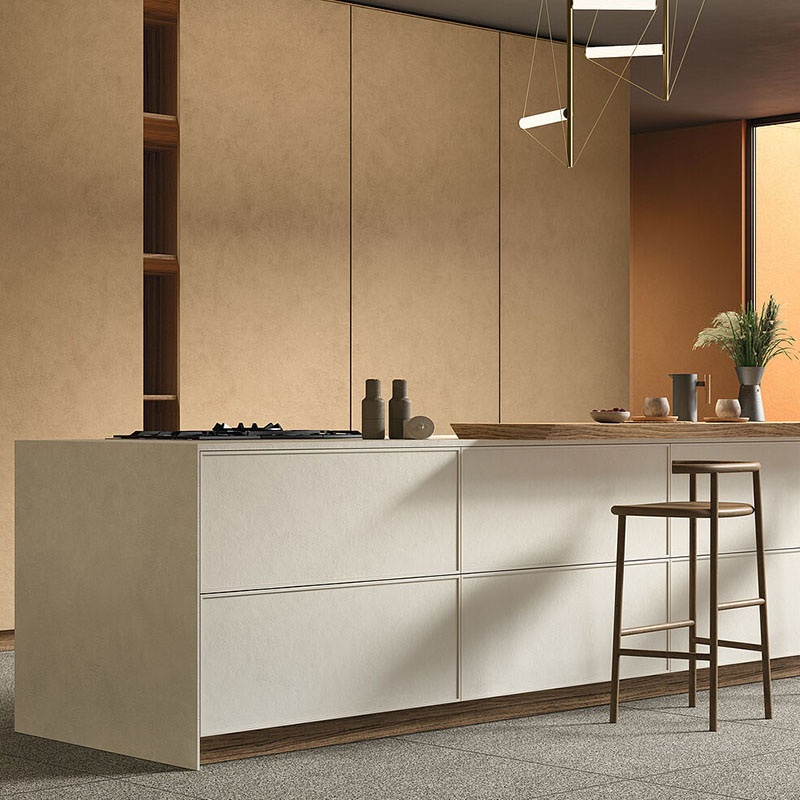 Il gres laminato è il risultato di una tecnologia di laminazione e compattazione del gres porcellanato che rivoluziona il processo produttivo tradizionale ed ottiene così un prodotto completamente nuovo, resistente, leggero, flessibile, duttile e versatile. Che soddisfa in pieno le esigenze più attuali della moderna progettazione, sia per i pavimenti e i rivestimenti interni che per l’involucro architettonico. Grazie alla sua facilità di taglio e lavorazione è estremamente versatile e garantisce un alto livello di personalizzazione perfino di porte, ante, mobili e – ovviamente – top cucina, superfici un tempo interdette alla ceramica. La varietà di look, spessori, formati e finiture disponibili offre soluzioni sia per le nuove costruzioni che per le ristrutturazioni, inclusa la posa in sovrapposizione a pavimenti preesistenti.