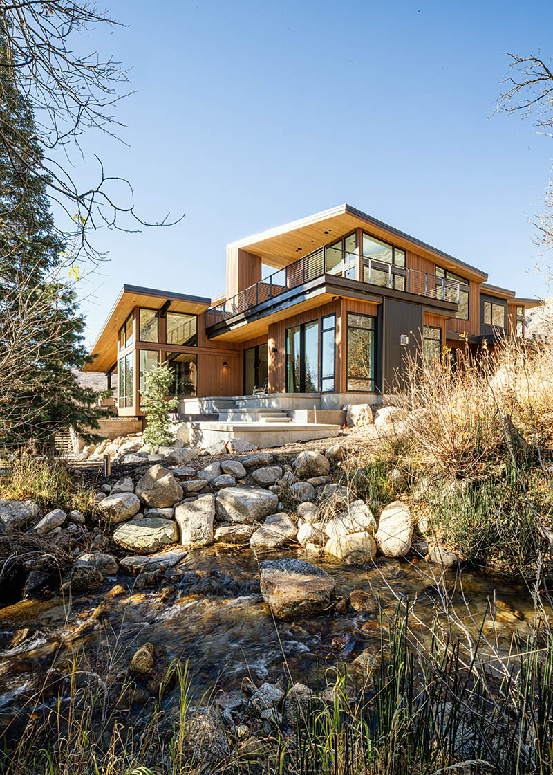 Progettata dallo studio Obicua Architecture su uno straordinario lotto di terreno affacciato su un ruscello a Three Falls, Alpine (UTAH), questa abitazione privata è stata concepita come un rifugio lontano dal caos dell'area metropolitana. Data la spettacolarità dell'ambiente circostante, costituito da un bosco di Aspen e abeti rossi, la presenza di un torrente con molteplici cascate e la vista panoramica, la casa è stata costruita come una serie di terrazze e decking aperti alla bellezza naturale.