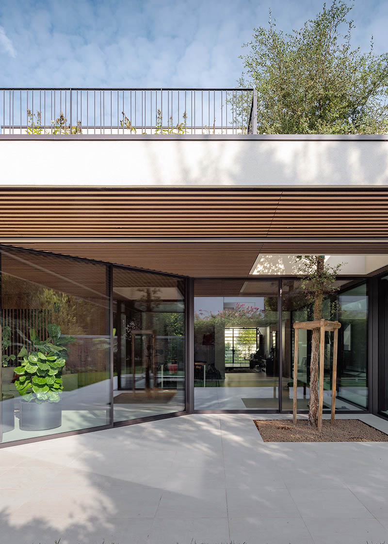 Per i pavimenti interni ed esterni della casa sono state scelte le grandi lastre ultrasottili della collezione Nextone. Selezionata in molteplici formati, declinati in tre differenti spessori, questa collezione traspone sia indoor che outdoor l'equilibrio estetico e naturale della pietra, offrendo impeccabile continuità visiva tra il giardino e gli ambienti interni. La tonalità Next Taupe, un grigio caldo con note di marrone, dona alle superfici un calore avvolgente e una matericità elegante. Per il bagno, invece, è stata utilizzata la collezione Noblesse, una collezione di marmi ceramici scelti tra le essenze naturali più nobili con colori vibranti e innovativi e nuance classiche ricalibrate. Nel progetto spicca Gray Marble, un marmo dalla texture raffinata e complessa con inserti minerali che spaziano dall’avorio al bronzo e rivestono di bellezza pareti, vasca, doccia e lavabo. Un progetto che ridisegna gli spazi per offrire non solo comfort, ma una connessione profonda con la natura.