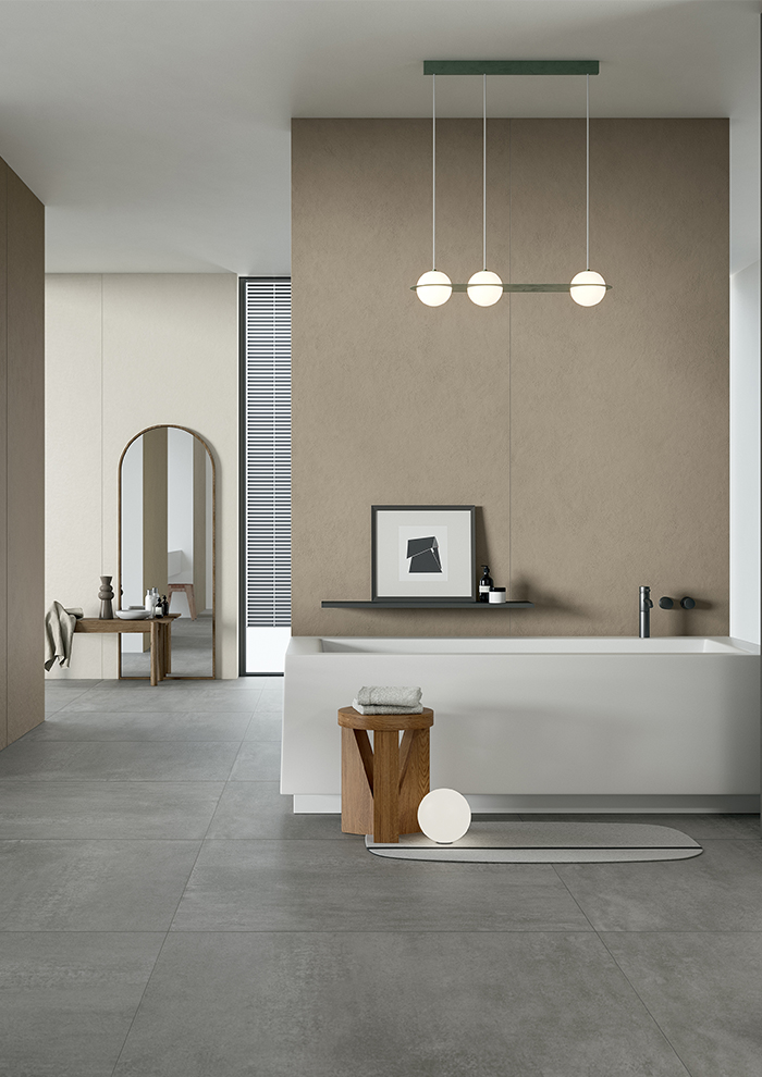 Infine, Pigmenti l’ultima proposta in lastre ultrasottili Slimtech Plus di Lea Ceramiche, nata dalla collaborazione con Ferruccio Laviani. Il risultato è un colore materico con struttura fine, dove leggeri movimenti grafici danno al colore profondità e dinamicità. Con Pigmenti la ceramica recupera la sua funzione primigenia: torna ad essere materia pura al servizio del colore. 12 le varianti colore proposte: una gamma dai toni contemporanei, ispirati alle cromie naturali e al tempo stesso alle nuance più ricercate, facilmente combinabili tra loro, oltre che alle altre collezioni del brand. Pigmenti è anche straordinariamente sottile: soli 3,5mm in lastre di grande formato (3x1m), che possono essere impiegate su superfici verticali, in indoor, per ambienti fortemente connotati, o in outdoor. Le grandi lastre sottili si prestano anche a un rinnovamento sostenibile degli spazi: grazie al loro ridottissimo spessore possono essere posate in sovrapposizione ai rivestimenti esistenti, senza creare rifiuti di natura edile per la rimozione dei materiali precedenti.