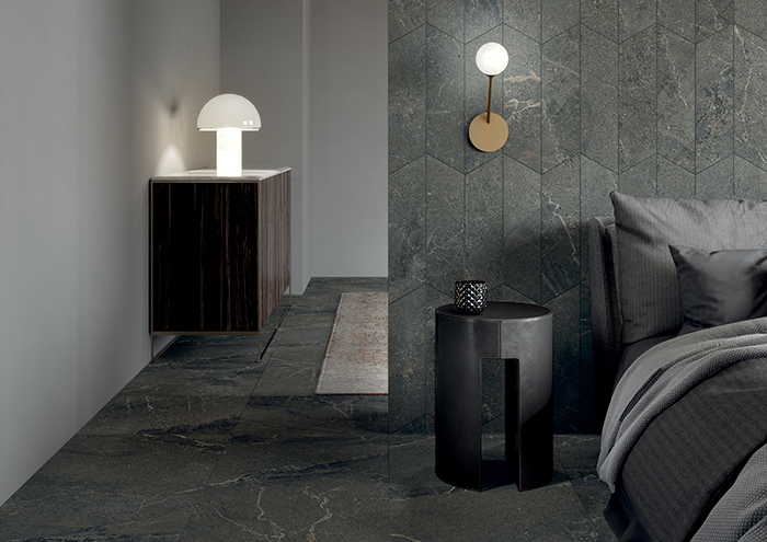 L’ardesia, ad esempio, è perfetta per conferire ai propri spazi un’allure misteriosa ed elegante, specialmente quando la sua essenza è riletta in chiave moderna e audace, come in Waterfall. La collezione dove cromie grigie e scure evocano il fascino misterioso delle rocce antiche su piastrelle in ceramica effetto pietra capaci di conferire bellezza inalterabile nel tempo agli spazi.
