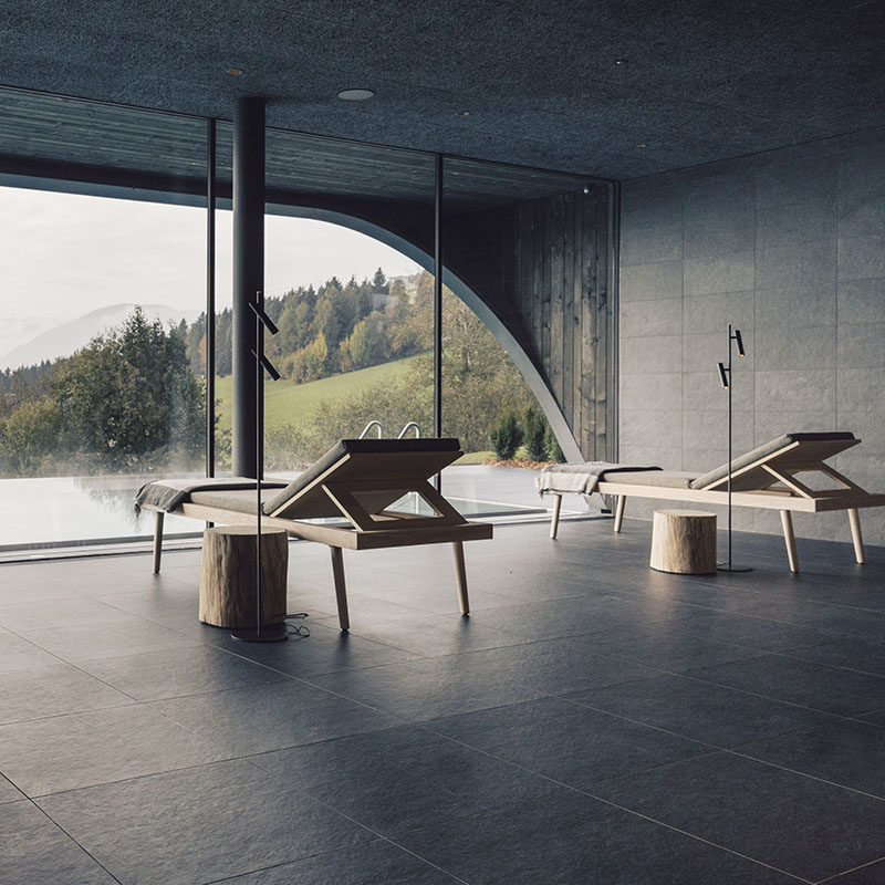 Nel mondo hospitality, le versioni grip assicurano comfort e sicurezza in spa, aree wellness, piscine e ambienti umidi. L’aspetto naturale della pietra ceramica contribuisce a costruire atmosfere eleganti e immersive. Nel retail, le grandi lastre Slimtech consentono di progettare superfici iconiche e scenografiche, senza rinunciare a prestazioni tecniche e durabilità.