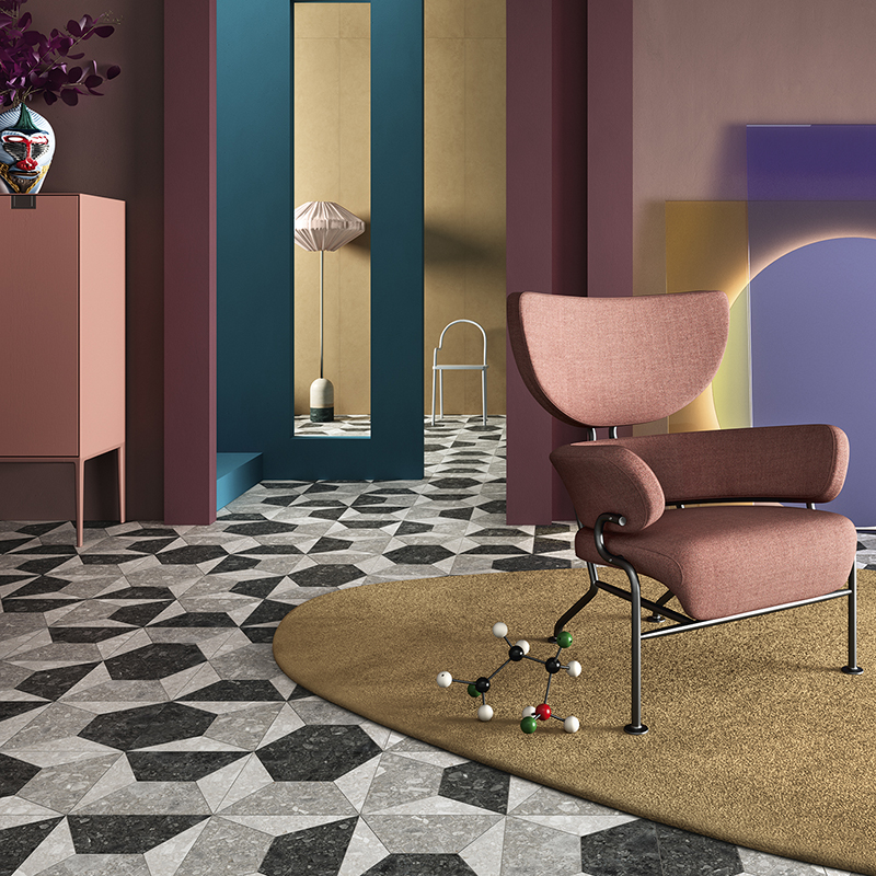 In linea con la tendenza Designing for Dopamine, le superfici effetto pietra possono essere accostate a dettagli di design unici, accenti cromatici e oggetti fuori scala. L’abbinamento con effetto marmo, legno e cemento amplia ulteriormente le possibilità stilistiche, dando forma a spazi eclettici, funzionali e coerenti. Grazie alla loro eleganza naturale, le superfici Lea Ceramiche valorizzano sia ambienti minimalisti che spazi eclettici, inserendosi con coerenza in ogni progetto.