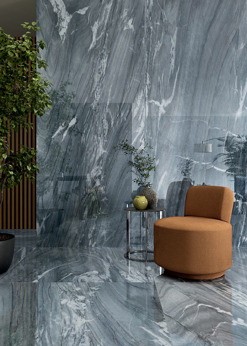 Qui, ogni dettaglio delle pareti in grès porcellanato contribuisce a creare un'atmosfera accogliente e ricercata. Un luogo in cui l'arte della vita quotidiana si può esprimere attraverso un ben preciso comfort visivo.