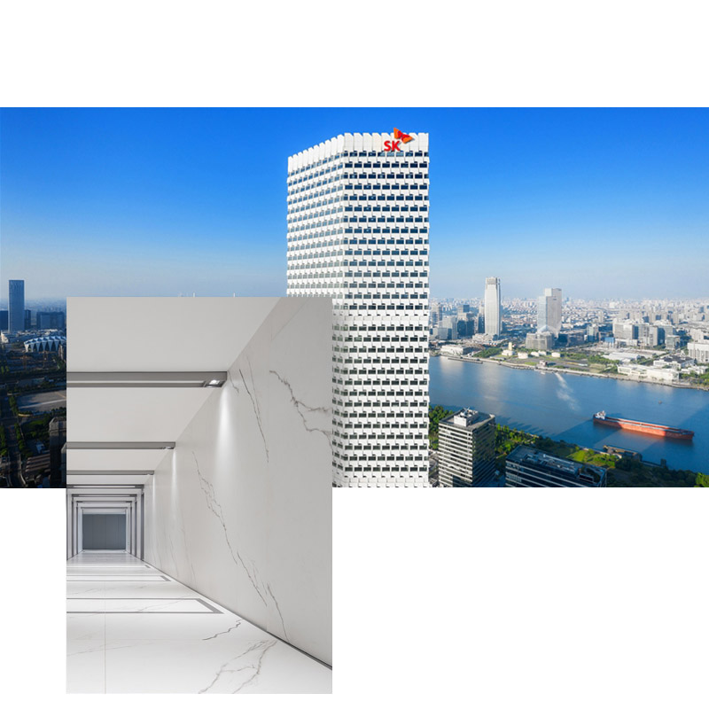 Nell’area ad est del fiume Huangpu, propriamente denominata Pudong, sorge SK Group Tower, il decimo edificio più alto di Shanghai, 275 metri di altezza che svettano imperiosi nel distretto finanziario-commerciale sito a poca distanza dallo Shanghai World Expo Center e dall’Aeroporto internazionale di Pudong, uno dei principali scali aerei cinesi.