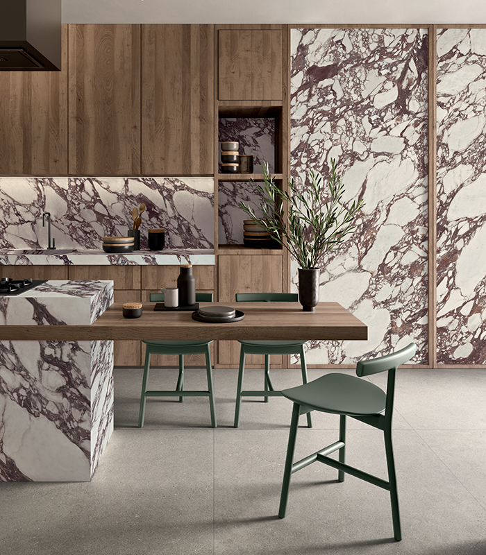 Dall’effetto pietra al calore del legno, dall’eleganza del marmo al minimalismo del cemento, fino al potere progettuale del colore, le collezioni Lea Ceramiche permettono di progettare cucine contemporanee dall’identità riconoscibile. Superfici pensate per piani di lavoro cucina in ceramica, backsplash, isole, rivestimenti continui e volumi contenitivi, in dialogo armonico con pavimenti e pareti, per un ecosistema funzionale e coerente.