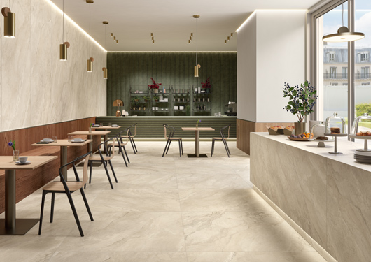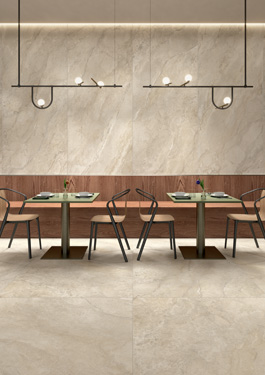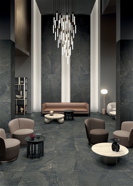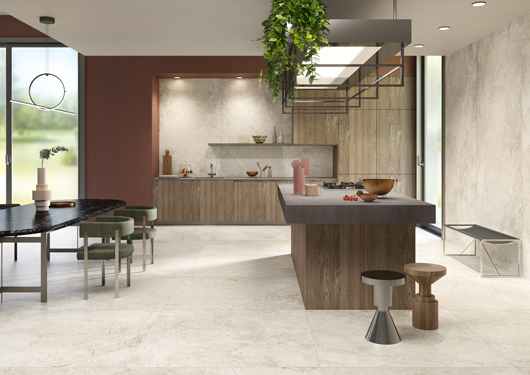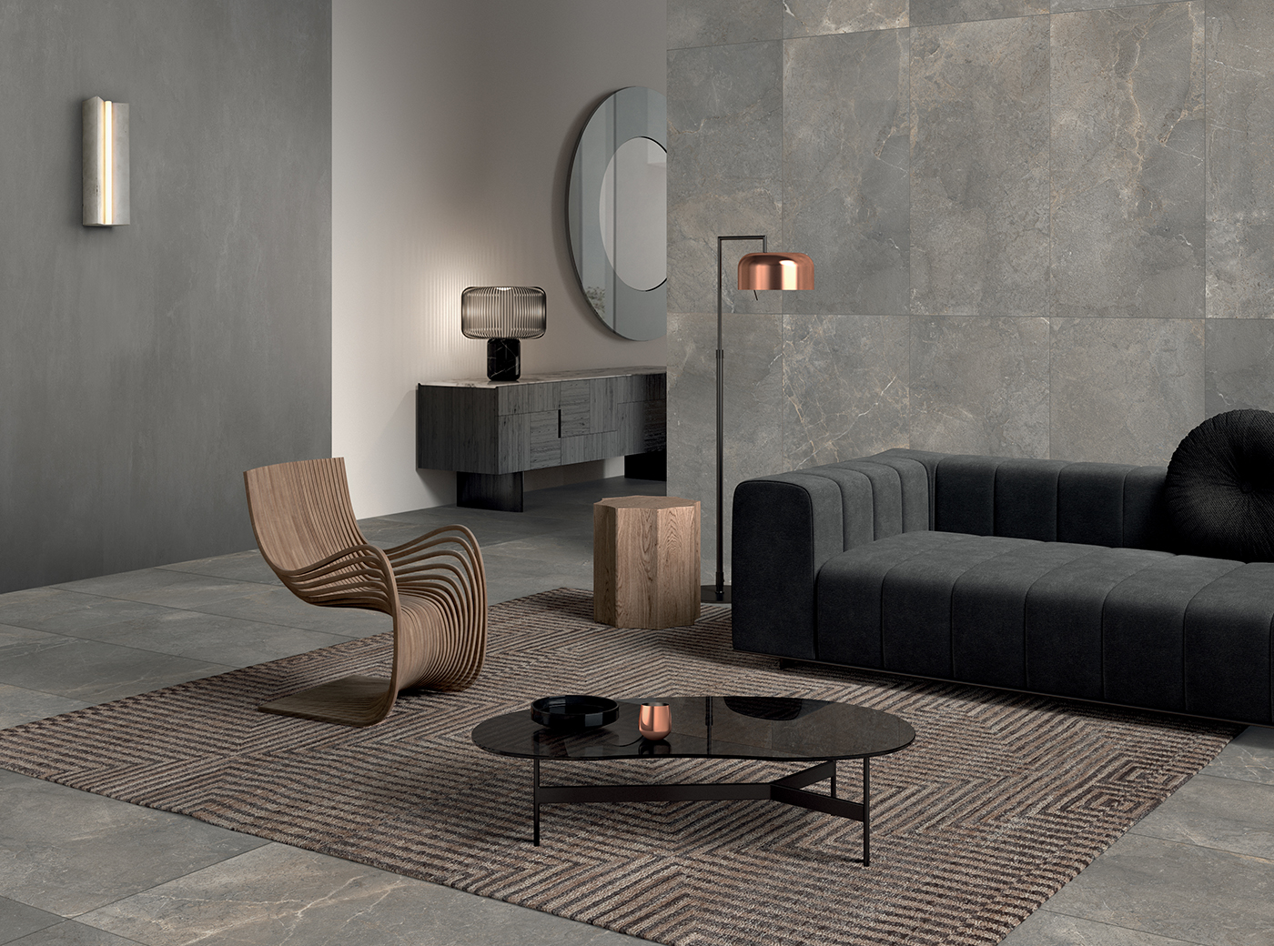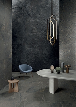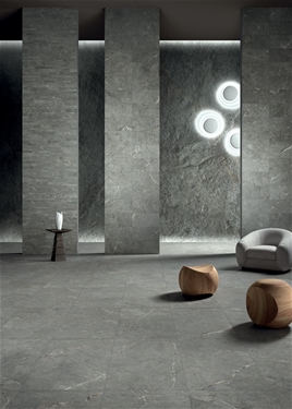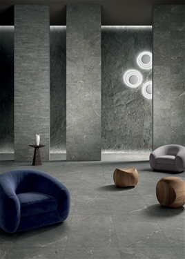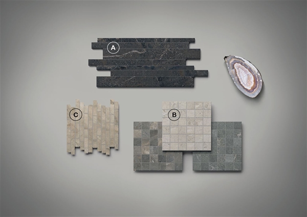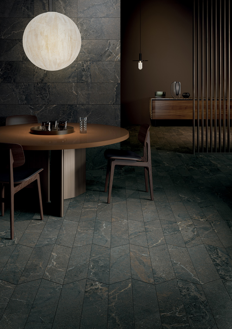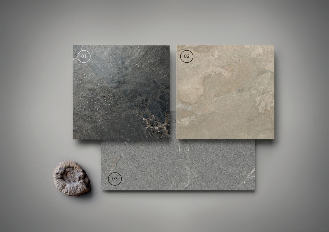 Un’inedita e sorprendente raccolta di superfici ceramiche nate dalla sapiente e calibrata fusione di marmi e pietre dall'intenso realismo tattile e visivo.