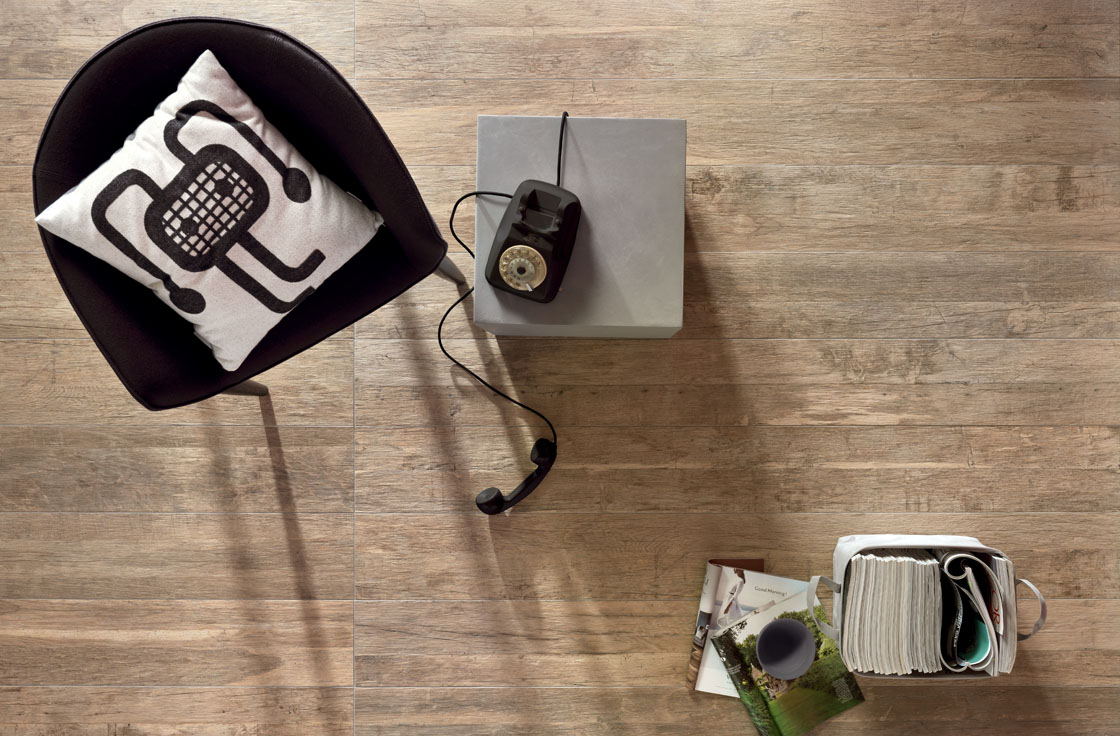Un attento studio per interpretare creativamente tavole recuperate da pavimenti e rivestimenti di interni e per dare origine a lastre ceramiche contemporanee e dal sapore vintage. L’usura causata dallo scorrere del tempo e le tracce lasciate sul legno sono rievocate nei rilievi strutturali, nelle venature e nelle variazioni cromatiche delle superfici.