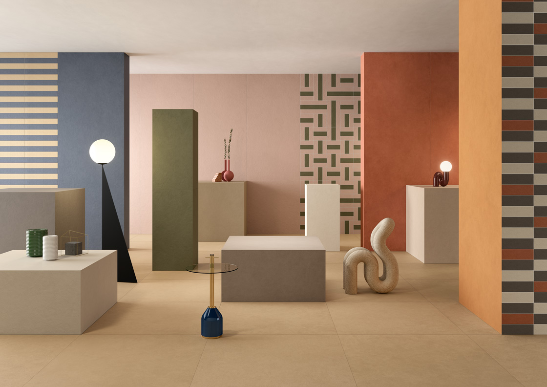 La collezione si articola in 5 varianti - Segno &, Segno +, Segno =, Segno # e Goccio - che si combinano con le 12 nuance di Pigmenti. Il risultato è una gamma dai toni contemporanei, ispirati alle cromie naturali e al tempo stesso più ricercate: dall’ocra, alla terra, passando a colori più freddi, come il verde e il blu, fino ai neutri e i grigi.