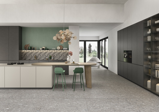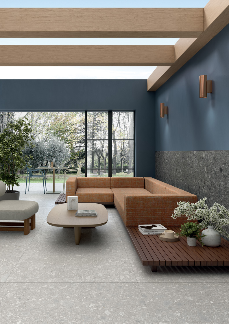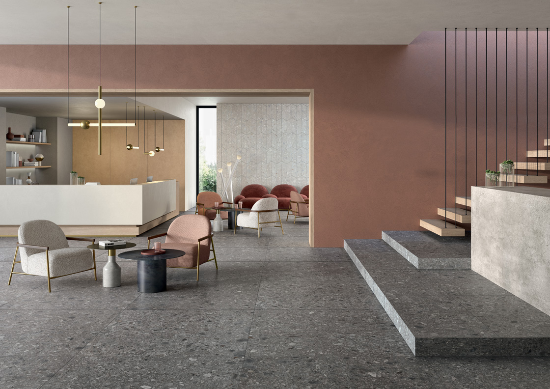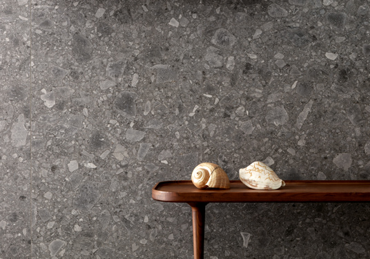 Side Stone propone un punto di vista inedito sul Ceppo di Gré, pietra italiana estratta sul lago d’Iseo che ha definito l’identità architettonica della Milano novecentesca. Lea Ceramiche reinterpreta ed esalta la forza espressiva di questa iconica texture minerale attraverso una grafica ricca e distintiva, ispirata all’agglomerato lapideo e al suo potenziale decorativo.