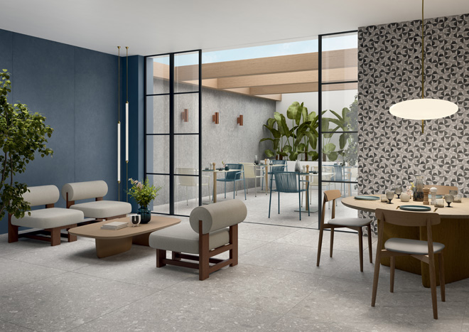 Side Stone è una collezione ceramica dalla spiccata attitudine progettuale: articolata in due tecnologie complementari, propone tre nuance tutte abbinabili, proprio in virtù della perfetta sintonia cromatica, e formati che vanno dal 30x60 al 120x120 cm e un ricco apparato di decori.