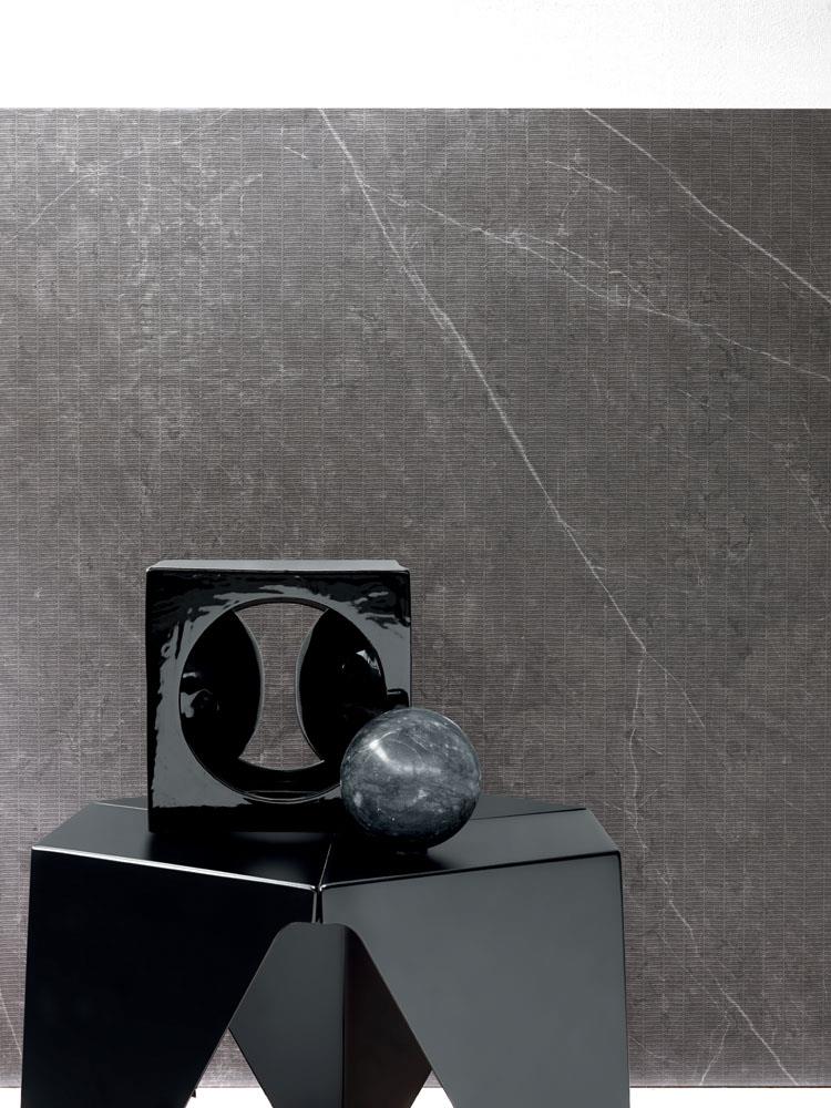 Volevo andare oltre il concetto dell’imitazione e provare a dargli una definizione diversa. Così ho giocato dichiaratamente con la connotazione del falso, liberandolo da qualsiasi accezione di giudizio negativo. Non è un materiale finto, è molto di più. Offre la doppia lettura della texture geometrica e naturale. E questo è possibile proprio perché si tratta di ceramica e non di pietra naturale. La performance tecnica del materiale “finto” – come le grandi dimensioni, la resistenza, il peso, lo spessore minimo – impossibile da ottenere con il marmo, giustifica un nuovo vero.