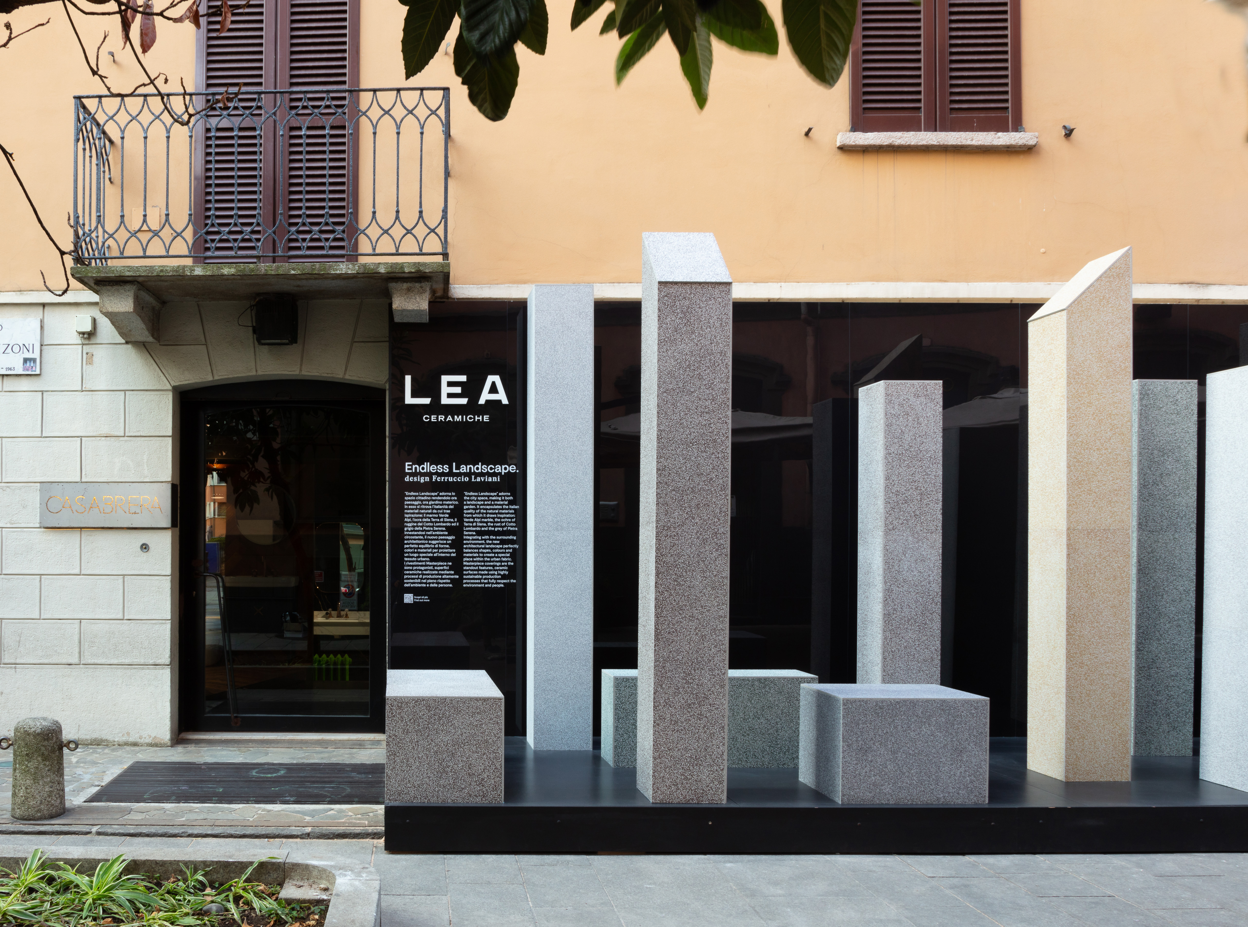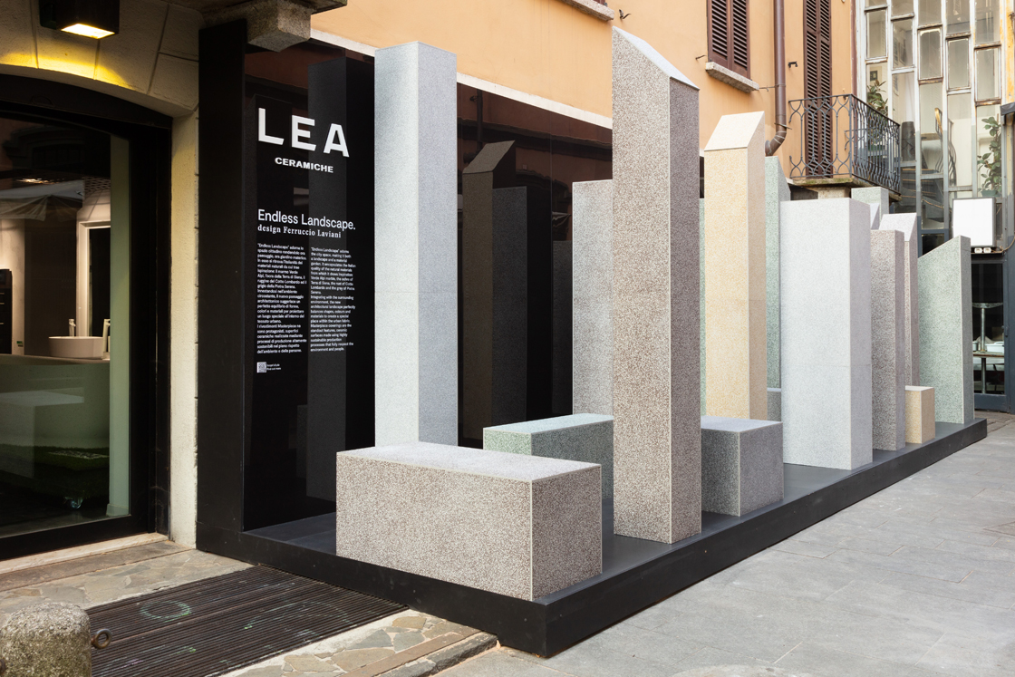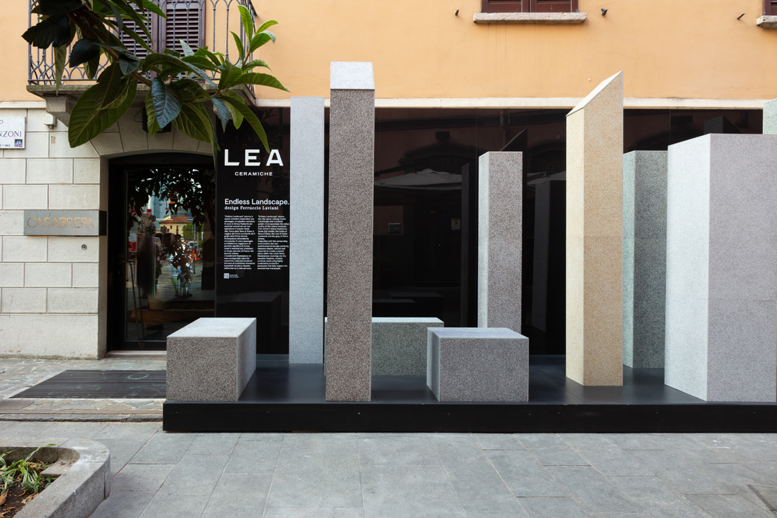 Uno spazio dinamico e suggestivo racconta l’eclettica e visionaria collezione Masterpiece di Lea Ceramiche firmata dall’architetto Ferruccio Laviani.