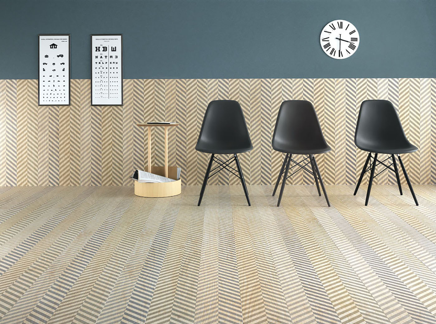 Il progetto si presenta come una novità a partire dal formato. Invece di lavorare su dimensioni standard, la nuova linea ricorre alla doga lunga Lea Slimtech (20 x 200 cm) presentata nel nuovo spessore di 5,5 mm.