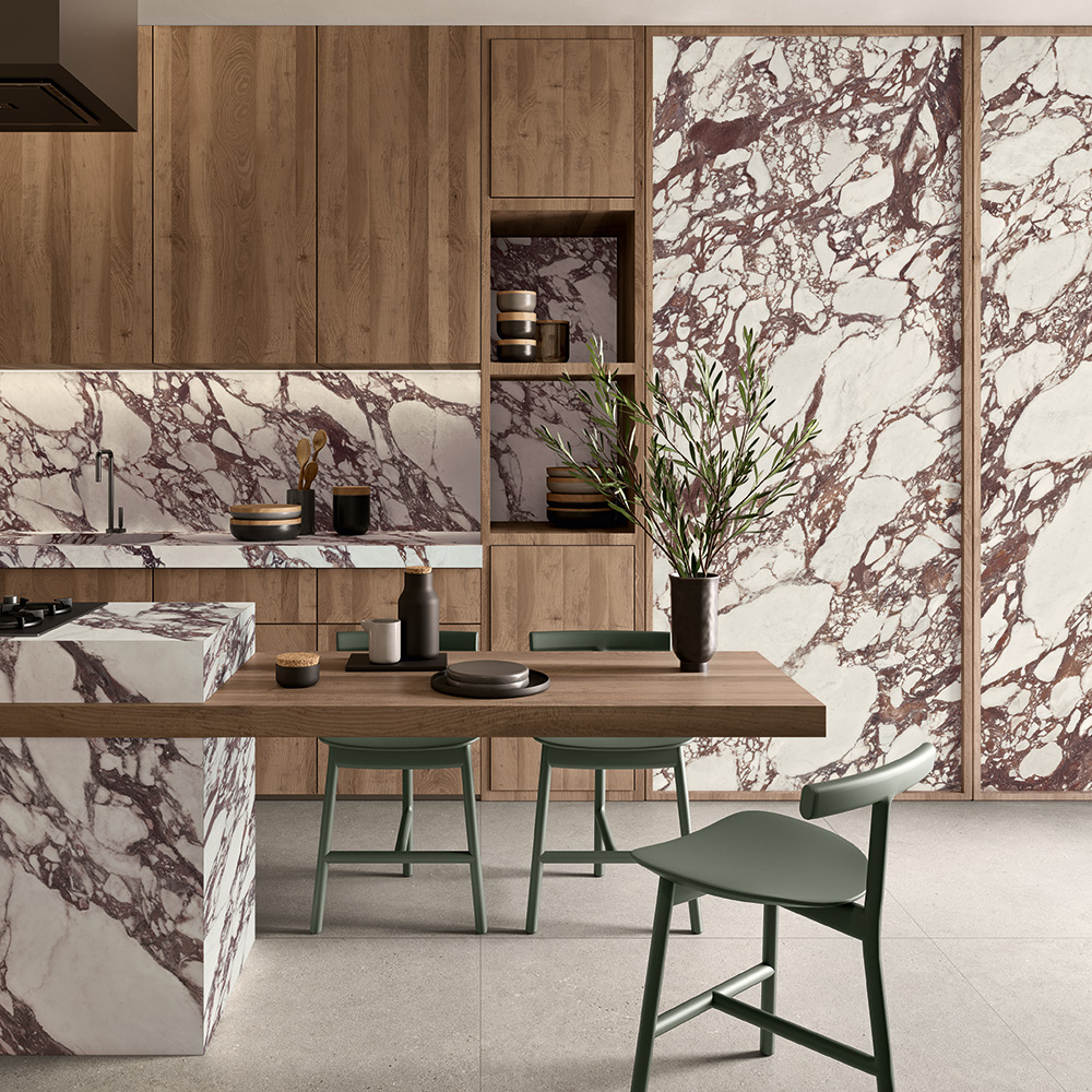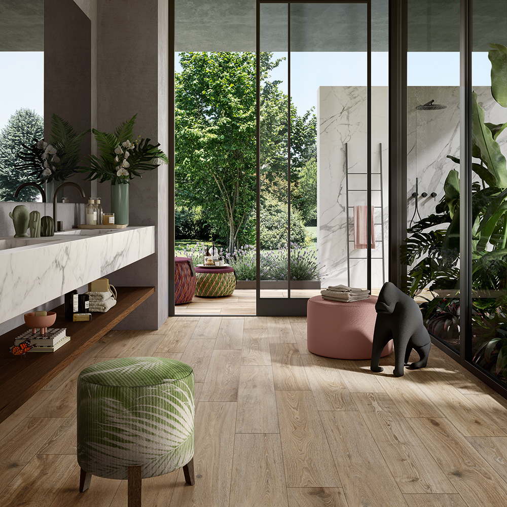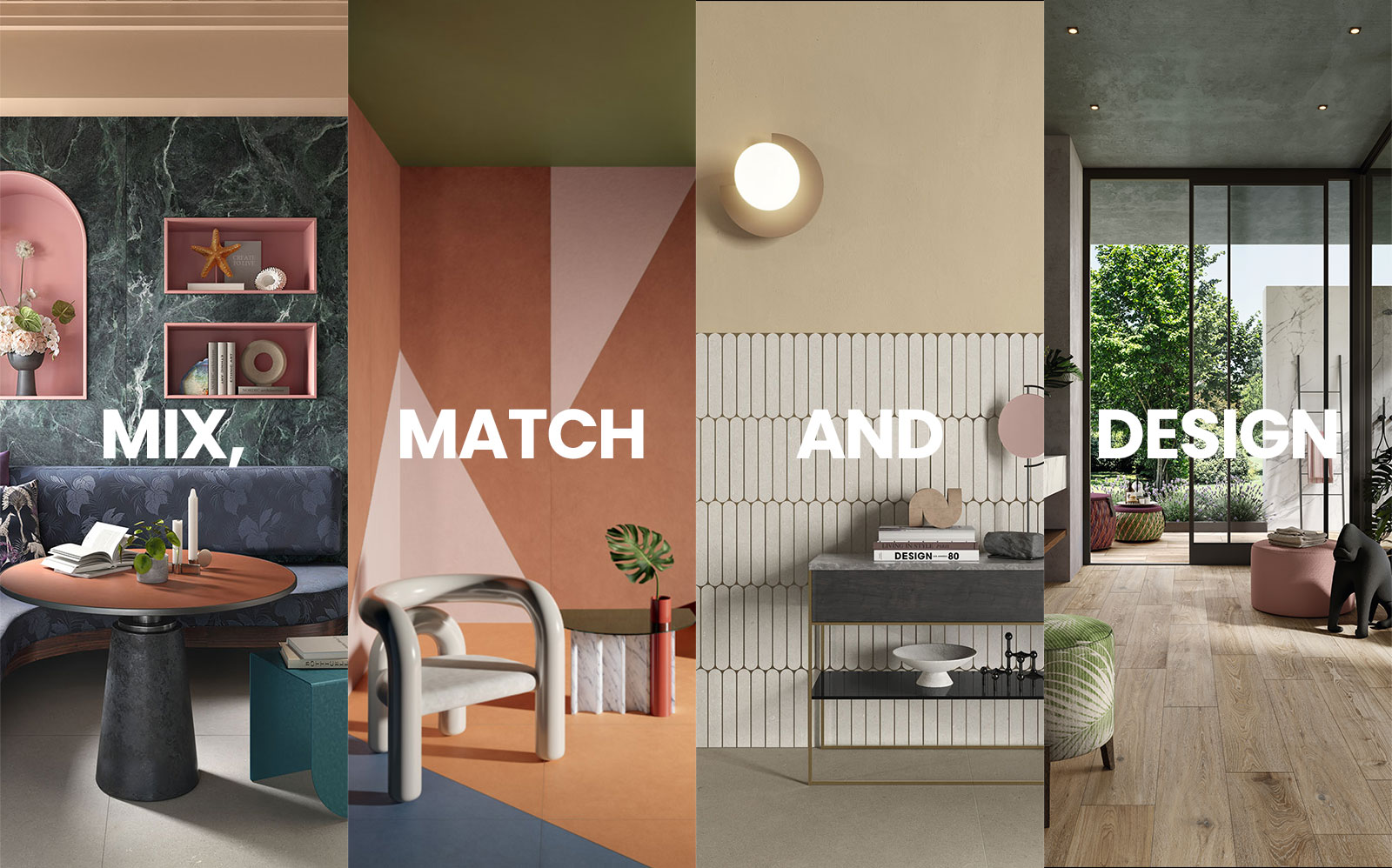 Ogni collezione interpreta un’estetica distintiva, ma trova sempre un punto d’incontro con le altre: cemento e marmo, pietra e legno, colori saturi e neutri sofisticati.