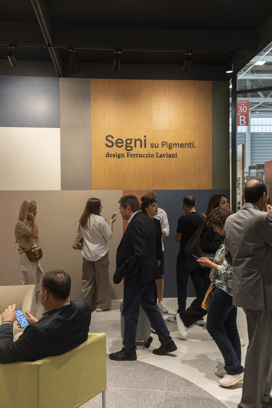 Segni su Pigmenti è frutto di un’elaborazione grafica delle ceramiche figurative degli anni 60 e dalle sperimentazioni dell’arte concettuale. Proposta in lastre ultrasottili Slimtech 3Plus, la capsule colletction nasce dalla consolidata collaborazione con Ferruccio Laviani e declina in senso decorativo i cromatismi del progetto Pigmenti, dello stesso designer, sovrapponendovi linee imperfette e gocce pennellate che diventano texture dal rilievo materico e che danno vita a superfici vivide e dinamiche.