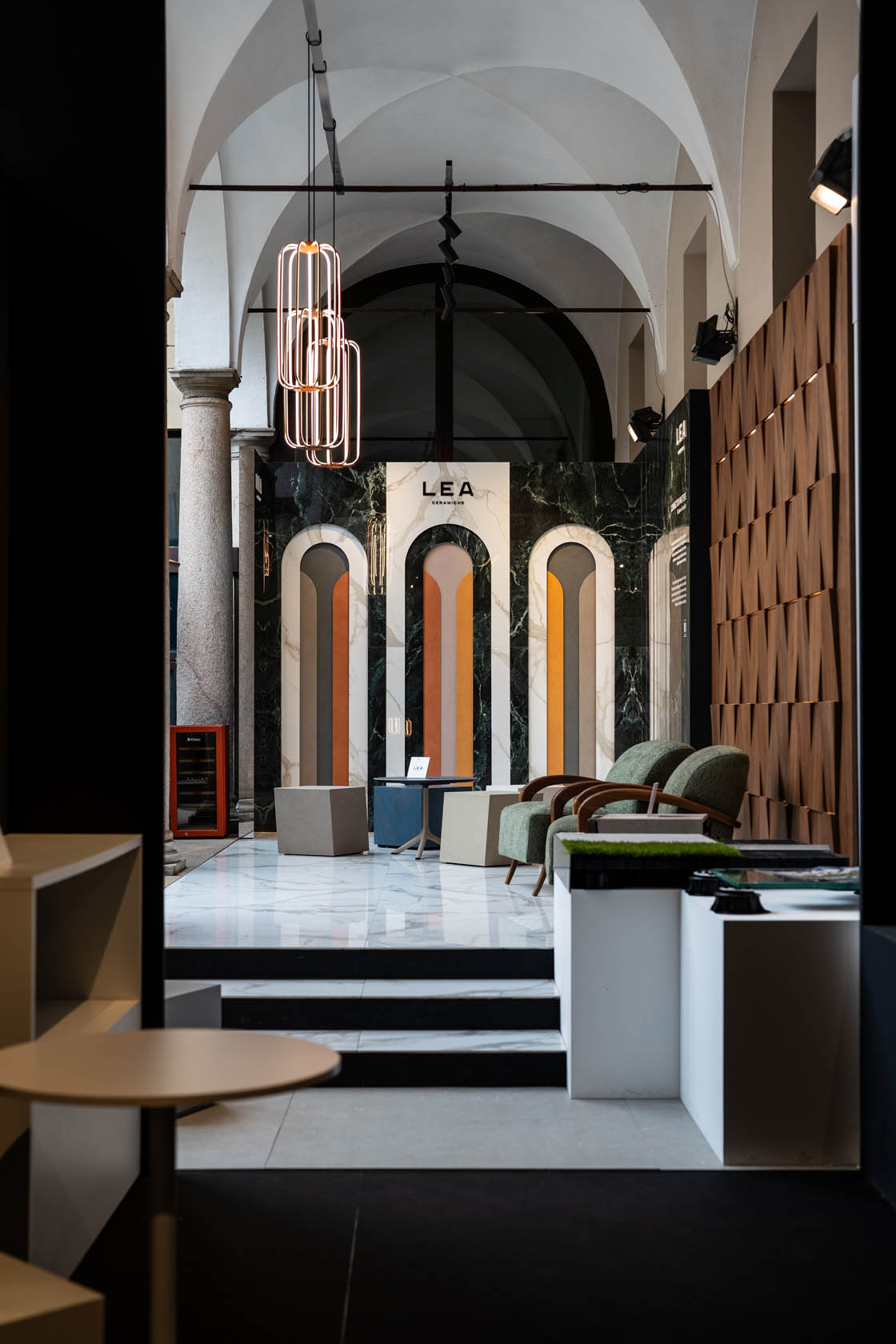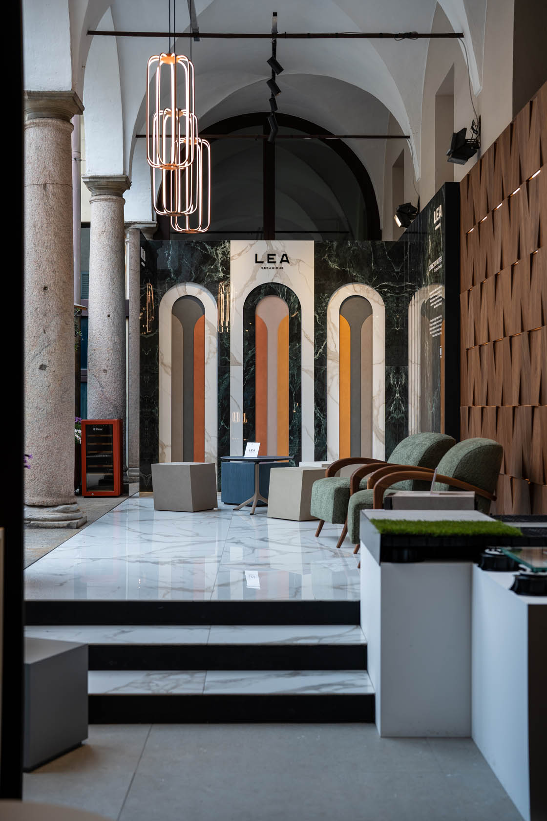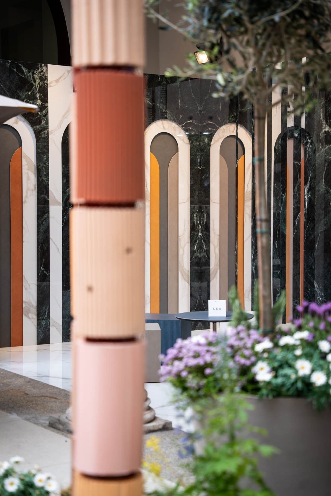 Oltre all’installazione principale, Lea Ceramiche ha lasciato il segno in altri spazi simbolici dei Chiostri di San Marco. Le superfici della collezione Intense hanno fatto da scenografia all’installazione Cohabitare dello studio Formafantasma per Perrier-Jouët, mentre le pavimentazioni outdoor in 20 mm delle collezioni Waterfall, Masterpiece e Intense hanno garantito performance tecniche ed estetiche di altissimo livello al Chiostro Grande.