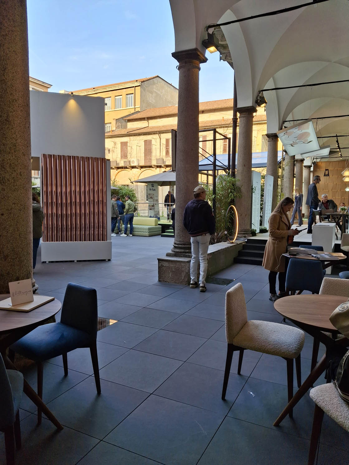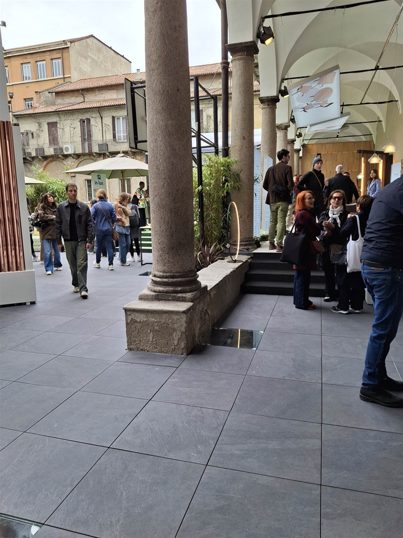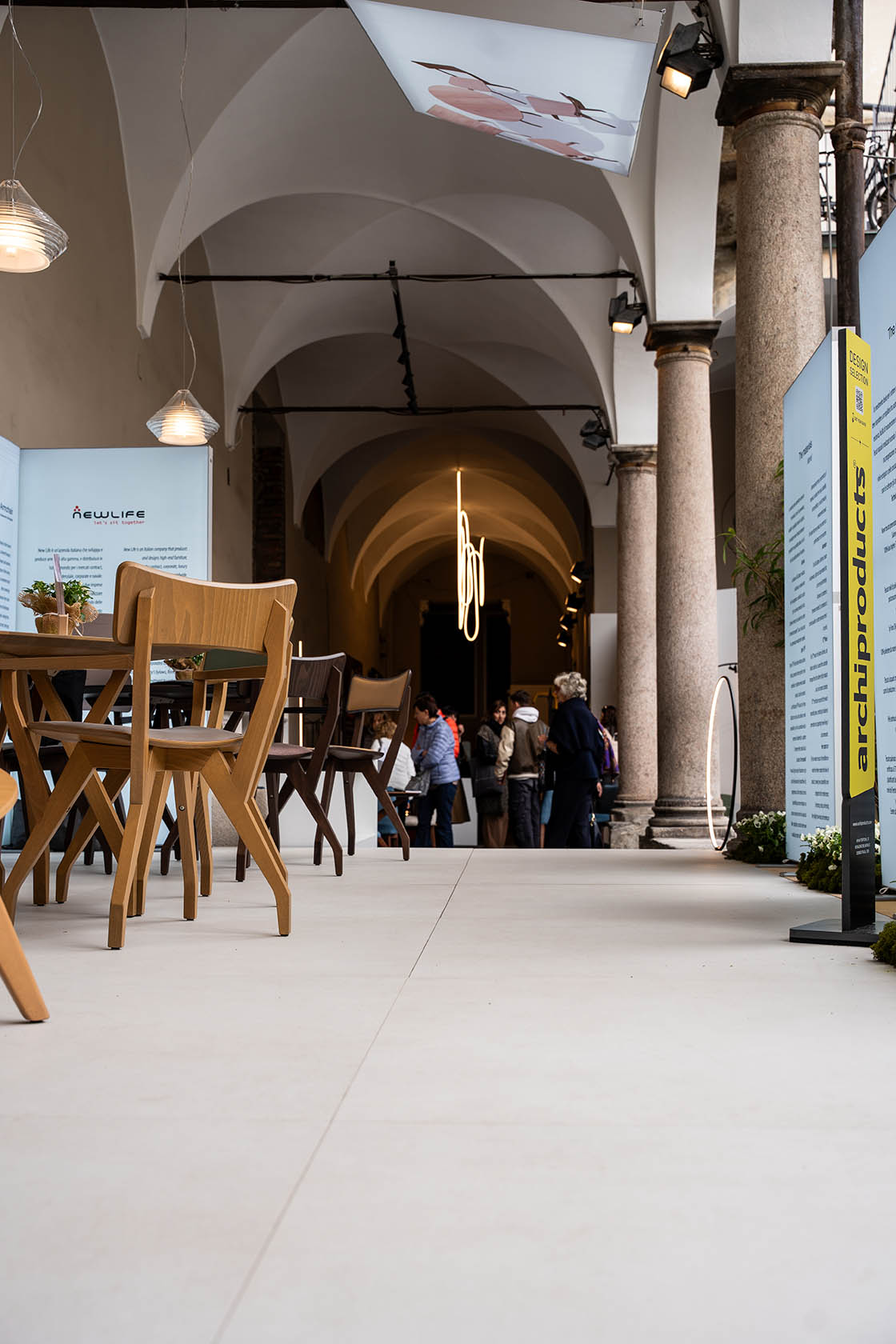 Oltre all’installazione principale, Lea Ceramiche ha lasciato il segno in altri spazi simbolici dei Chiostri di San Marco. Le superfici della collezione Intense hanno fatto da scenografia all’installazione Cohabitare dello studio Formafantasma per Perrier-Jouët, mentre le pavimentazioni outdoor in 20 mm delle collezioni Waterfall, Masterpiece e Intense hanno garantito performance tecniche ed estetiche di altissimo livello al Chiostro Grande.