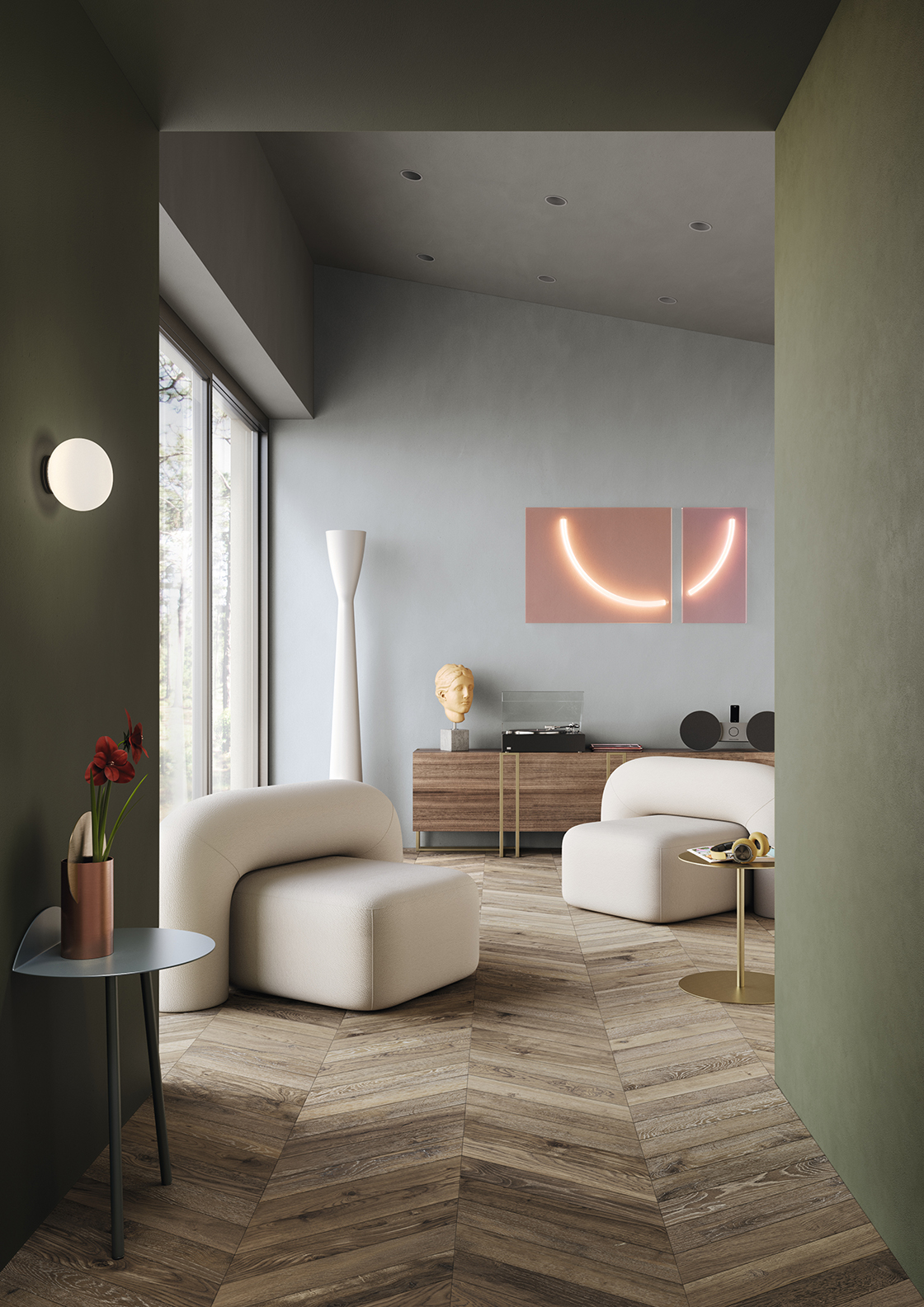 La naturalità delle serie è esaltata dalla microstruttura superficiale, perfettamente coincidente con la grafica ad altissima risoluzione, una sinergia produttiva che discende dalla più avanzata tecnologia digitale.