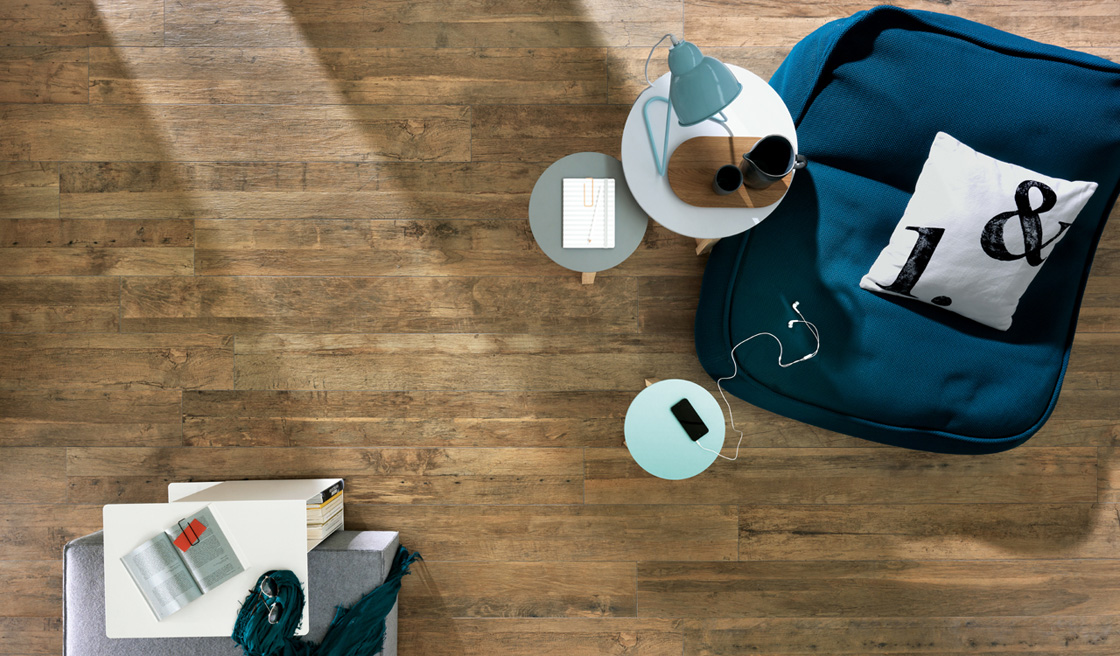 Un attento studio per interpretare creativamente tavole recuperate da pavimenti e rivestimenti di interni e per dare origine a lastre ceramiche contemporanee e dal sapore vintage. L’usura causata dallo scorrere del tempo e le tracce lasciate sul legno sono rievocate nei rilievi strutturali, nelle venature e nelle variazioni cromatiche delle superfici.