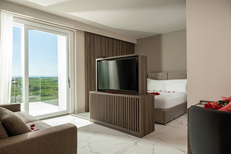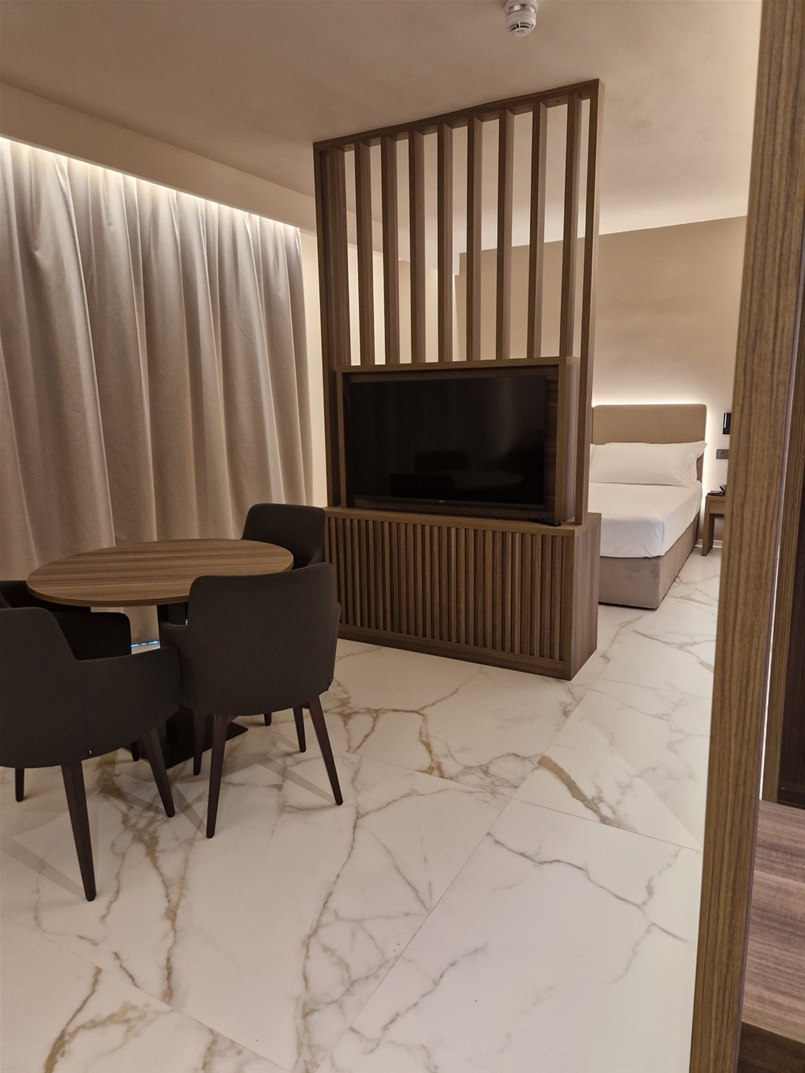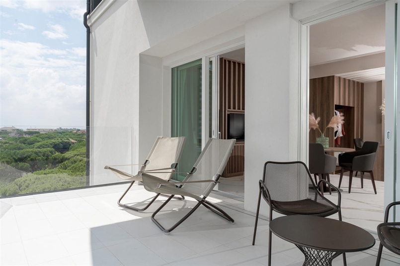I balconi delle suite, invece, sono rifiniti con la collezione Masterpiece – Master White naturale, che completa l’insieme con un tono essenziale e contemporaneo, in armonia con le linee sinuose delle facciate. In ogni ambiente, le superfici Lea Ceramiche diventano parte integrante dell’architettura: un dialogo tra design e tecnologia, che trasforma lo spazio in un’esperienza di benessere e bellezza senza tempo.
