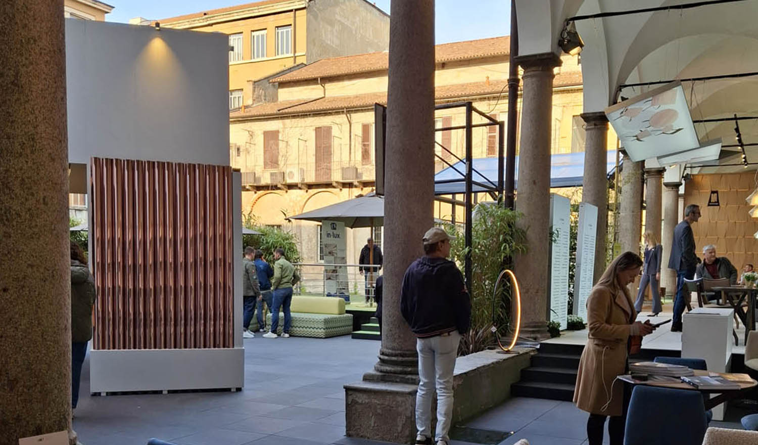 Concepita come un laboratorio creativo a cielo aperto, l’installazione ha invitato i visitatori a esplorare combinazioni inaspettate, a scoprire la potenza espressiva dell’accostamento e a riflettere sul concetto di stratificazione – fisica e visiva – come linguaggio progettuale contemporaneo. La composizione fluida di archi ceramici, superfici multilivello e giochi di luce dinamici ha dato forma a un sistema immersivo, in cui ogni dettaglio ha enfatizzato la ricchezza di sfumature, profondità, tecnologie e connessioni. Un ecosistema visivo in continuo divenire, capace di raccontare la versatilità dei materiali Lea e il loro ruolo attivo nella costruzione di narrazioni architettoniche.
