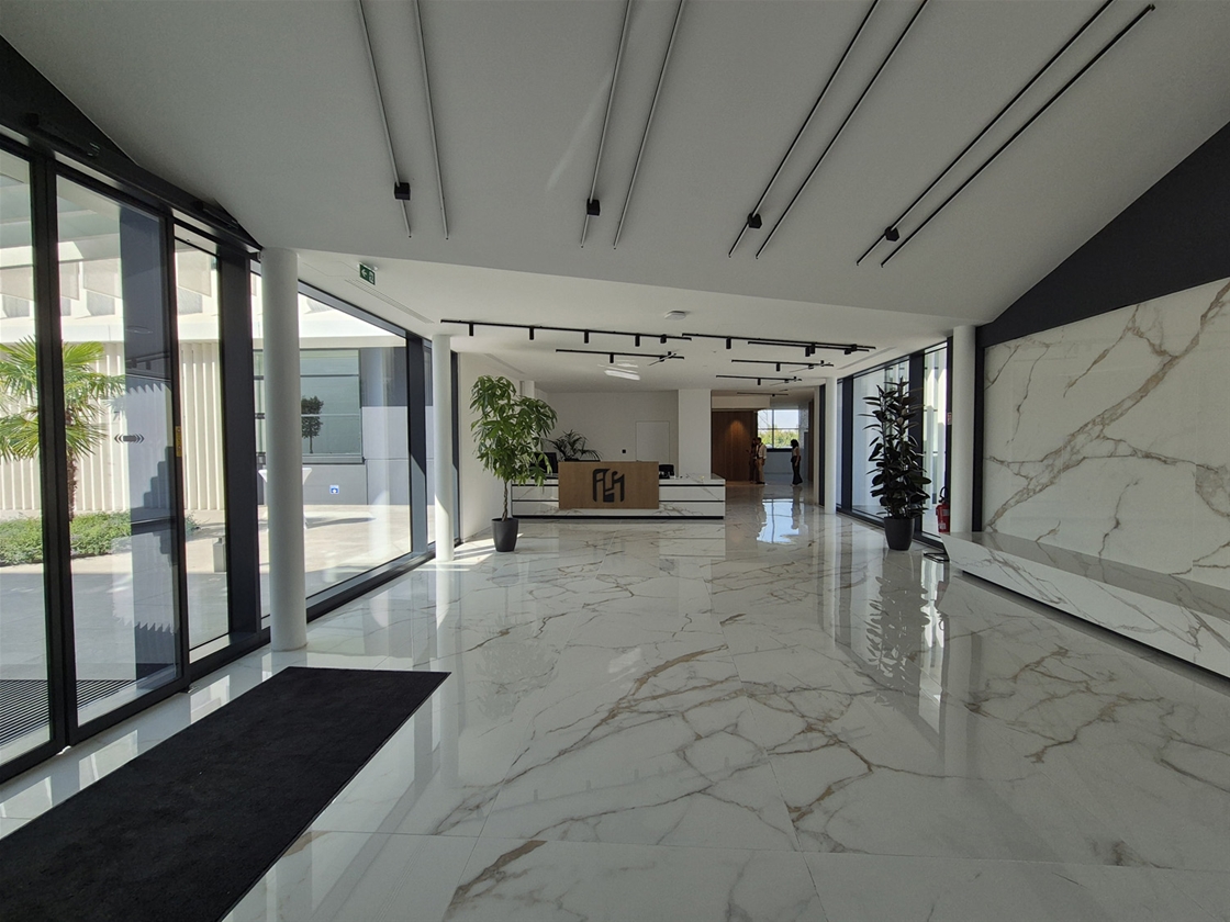 Negli ambienti interni dedicati alla rappresentanza, la nuance Calacatta Oro della collezione Noblesse introduce una dimensione sofisticata e fortemente espressiva.