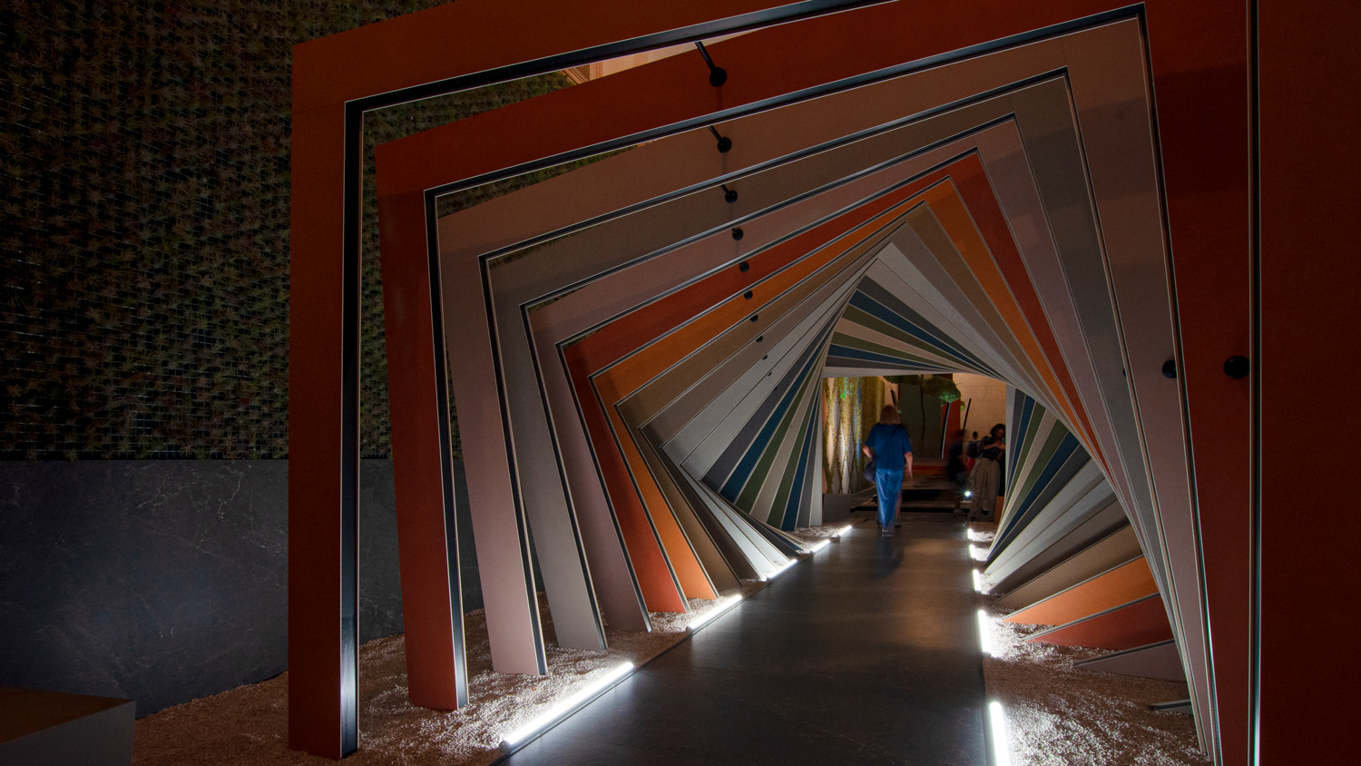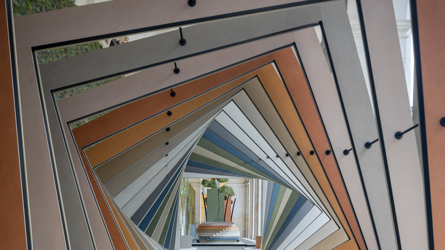 Per presentare al meglio le lastre ceramiche ultrasottili, materiale versatile e resistente, espressione di una tecnologia che ha rivoluzionato il processo produttivo per ottenere una soluzione altamente sostenibile, in occasione di una rassegna importante come il Landscape Festival, è stata realizzata un’installazione fruibile presso i portici della Biblioteca Civica Angelo Mai in Piazza Vecchia. Il progetto si ispira all’architettura organica, in cui l’azione umana si integra armoniosamente con l’ambiente circostante: un tunnel, dalle geometrie definite e vibranti, invita ad una indagine della materia ceramica fin nella sua essenza, con un obiettivo centrale: la sostenibilità. Alcuni vasi giganti, realizzati in grès porcellanato, rappresentano architetture e edifici con un cuore sostenibile: le piante di tillandsia che emergono dai grandi contenitori. Lo spazio, inoltre, sarà anche un luogo in cui sostare per apprezzare il piacere di un ambiente pensato secondo la scala dell’attenzione all’uomo e al pianeta.