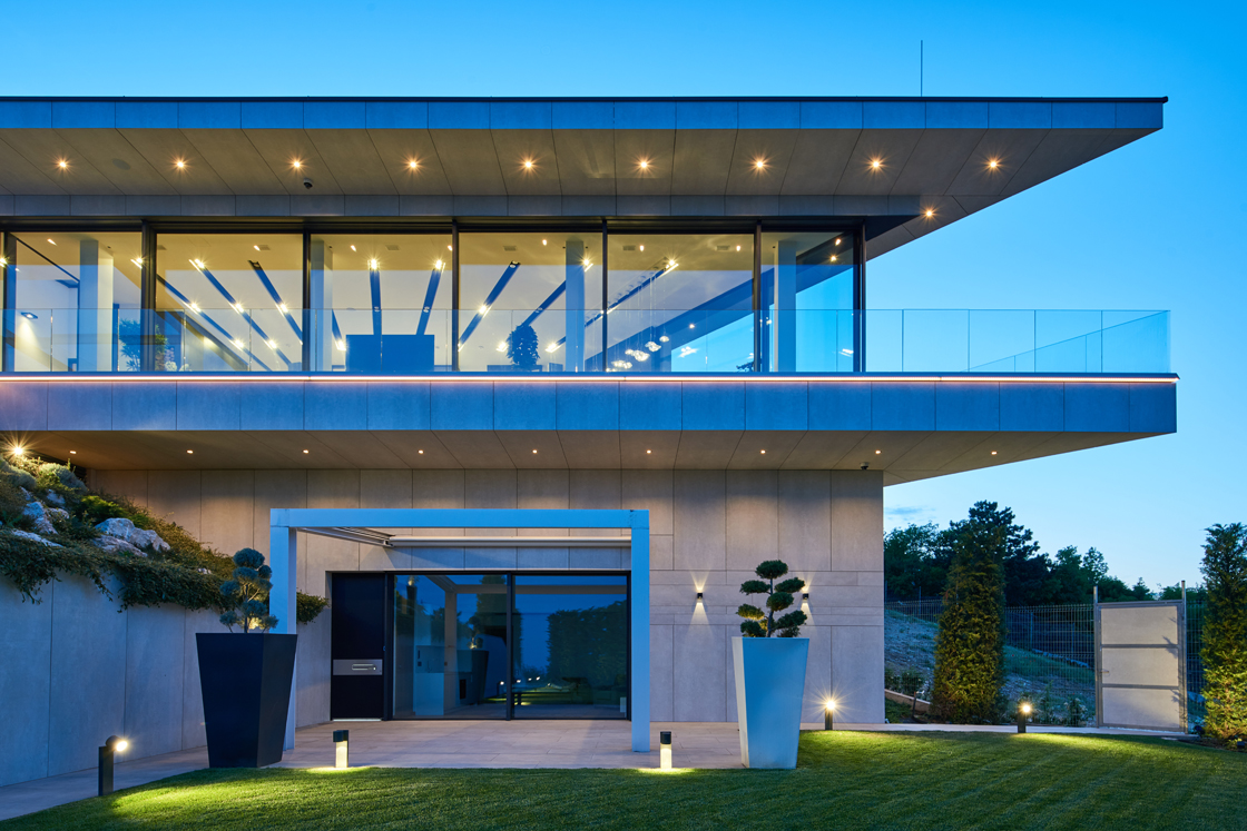 Una villa spettacolare, dalla morfologia peculiare, a tratti aguzza e decisa, in ogni caso ultramoderna, immersa nel verde del 12esimo distretto di una città suggestiva come Budapest. Disposta su più livelli, la sontuosa residenza ha una bianca facciata ventilata che contrasta piacevolmente con il verde del paesaggio circostante.