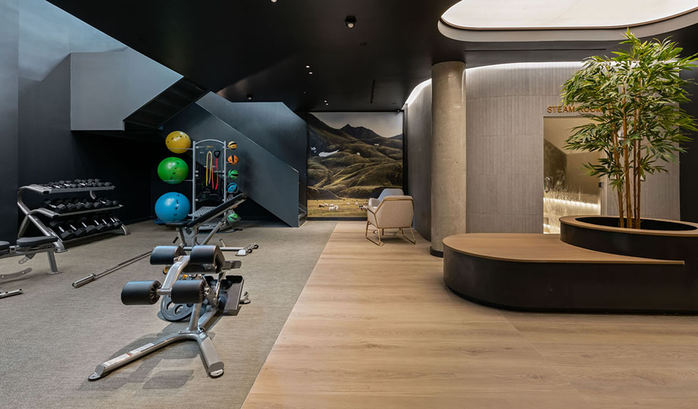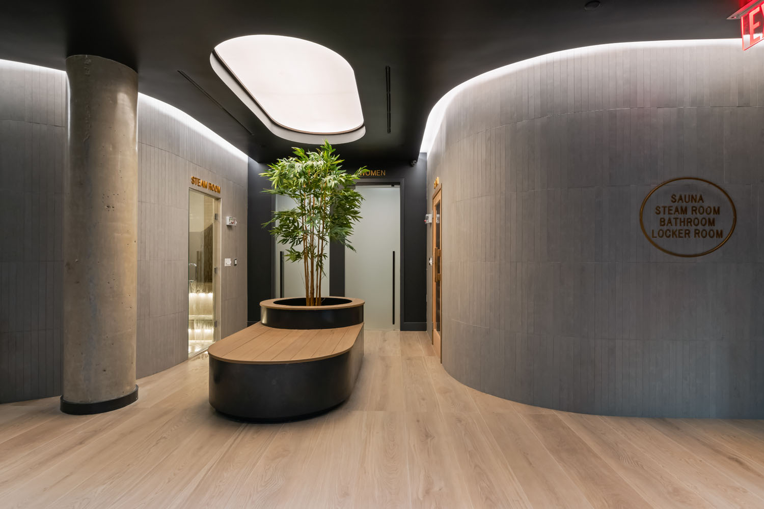 I progettisti di StudioSC che hanno curato questo prestigioso progetto, hanno conferito un aspetto coerente a tutto il complesso residenziale. In particolare sono state utilizzate le piastrelle effetto ardesia della collezione Waterfall Lea Ceramiche per il corridoio, il business center e la cantina. Waterfall è la collezione in gres porcellanato che rilegge in modo realistico e fisico una pietra rocciosa e antica come l’ardesia, ricreando sulla superficie gli effetti cangianti tipici delle pietre sedimentarie. Waterfall registra texture, irregolarità e variazioni di colori, espressioni puntuali del trascorrere del tempo. Le cromie di base grigie richiamano il naturale processo di ossidazione della pietra, materia in continua trasformazione che cambia colore, forma e struttura, adattandosi all’evolversi dei fenomeni naturali. Con il suo effetto naturale Waterfall conferisce allo spazio un carattere insieme raffinato ed armonioso.