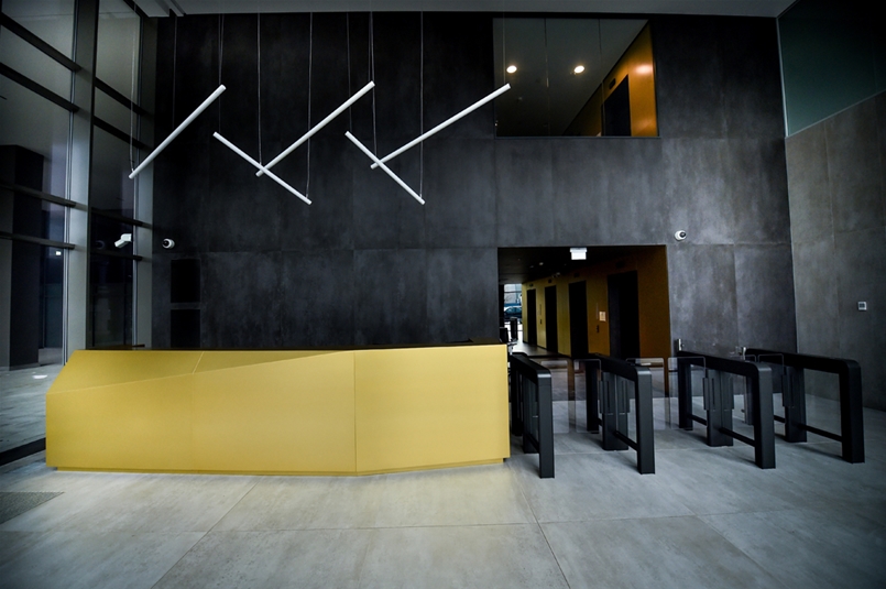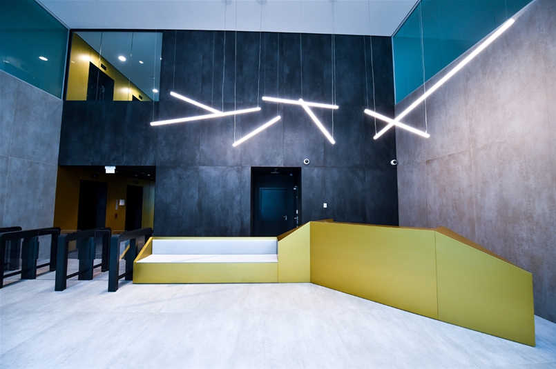 Concreto è la collezione Lea Ceramiche scelta per i pavimenti e le pareti della lobby d’ingresso. Grazie alla nuance più chiara, Concreto Light, e a quella dai toni più scuri, Concreto Dark, la collezione è stata in grado di creare un contrasto moderno e lineare tra la tenue luminosità dei pavimenti e l’elegante grigio scuro dei muri. Ispirata al materiale simbolo dell’architettura moderna, il cemento, è una serie estremamente materica e contemporanea in cui il tratto distintivo di Lea Ceramiche, la cura del dettaglio e la capacità di interpretare le istanze dell’interior design, si esprimono appieno e con vigore. Una vera e propria superficie architettonica che valorizza il senso di una sofisticata contemporaneità e ben si adatta allo stile dell’Aréna Business Campus.