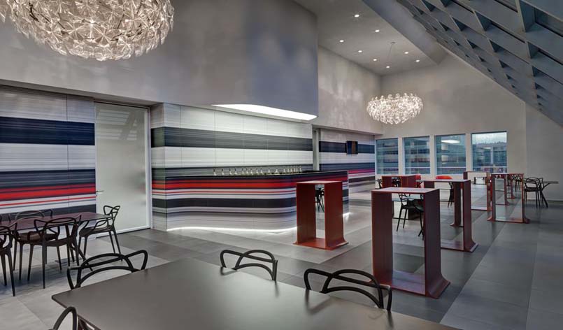 Fabio Novembre, architetto e designer, firma il progetto della nuova sede rossonera, Casa Milan. Aperta recentemente al pubblico e già polo d’attrazione della città di Milano, l’imponente complesso architettonico (10.000mq) include il museo Mondo Milan, il ristorante e bar Cucina Milanello, il Milan Store e spazi dedicati agli uffici. Per il rivestimento di parte delle superfici, Novembre ha coinvolto Lea Ceramiche, individuando due collezioni dall’effetto materico che si legano perfettamente all’imprinting pensato dall’architetto per l’intero spazio: Metropolis e Slimtech Gouache.10