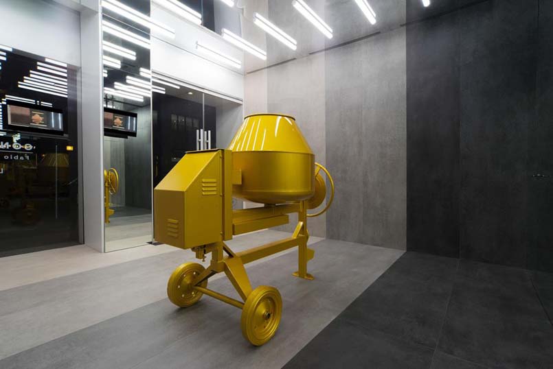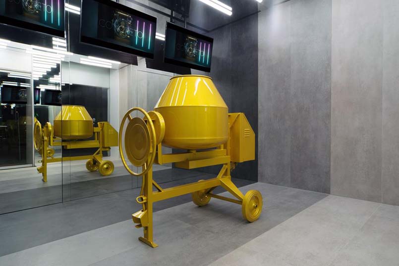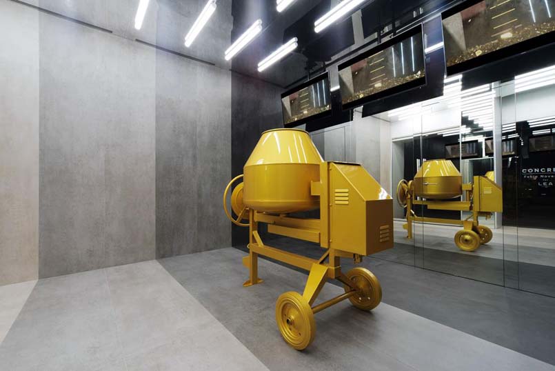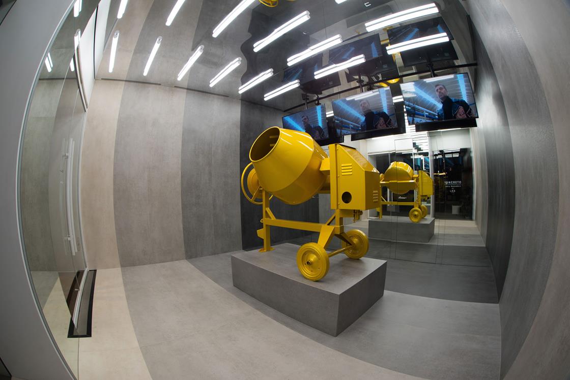 Il valore intrinseco dell’installazione, però, sta nel cemento stesso a cui si ispira per mescolare tra loro gli elementi e restituire un’esperienza dal tocco inaspettatamente glam.