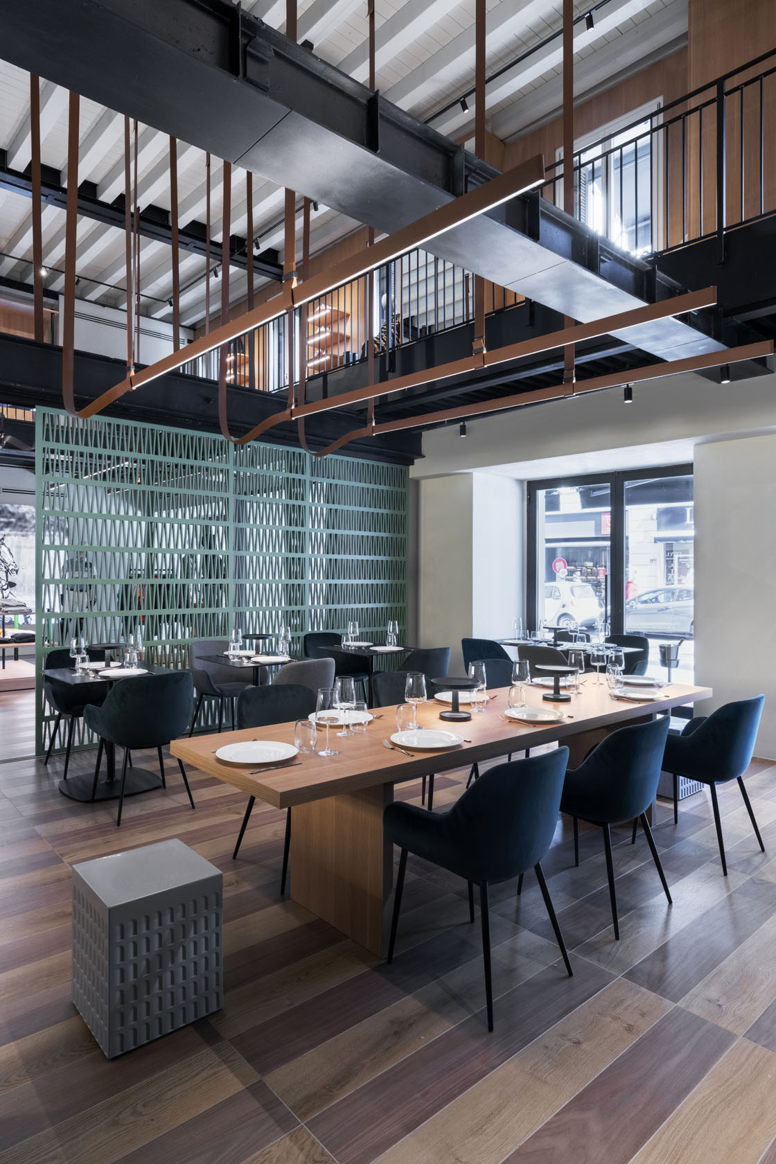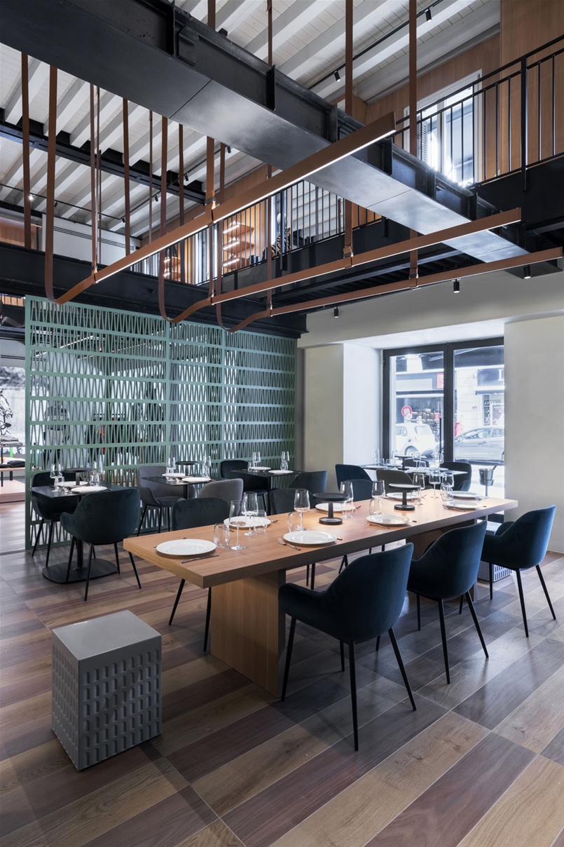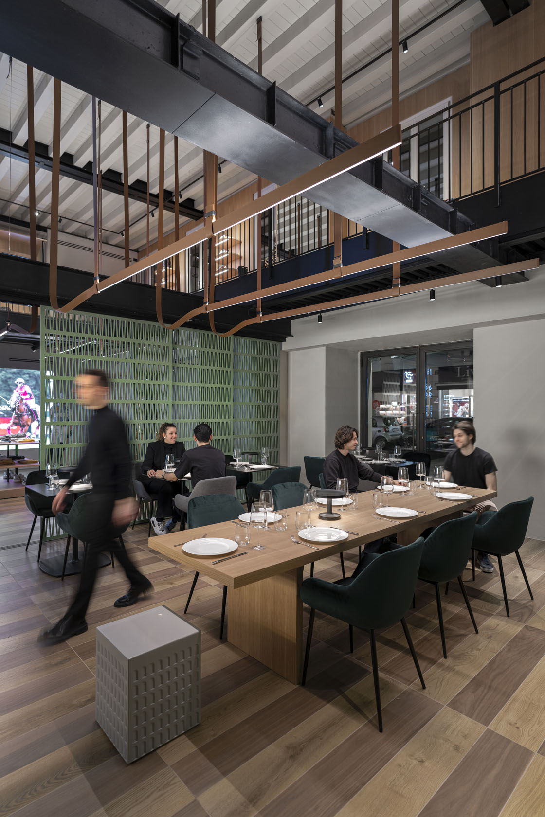 Il caldo e naturale effetto legno della collezione Bio Select di Lea Ceramiche è stato scelto da Fabio Novembre e dal suo team per il pavimento del negozio, nelle suggestive varianti cromatiche Oak Natural e Walnut Cinnamon, nel formato 20x120 cm e con uno spessore di 9,5 mm. Bio Select, che interpreta fedelmente le essenze classiche del legno, conferisce al flagship store un avvolgente senso di benessere e d’accoglienza, indispensabili in uno spazio commerciale molto frequentato. Per la cucina, invece, è stato selezionato il minimalismo elegante e funzionale della collezione Concreto ,nel colore Extra Light con finitura naturale, disegnata per Lea Ceramiche proprio da Fabio Novembre, che unisce l’estetica compatta del cemento a prestazioni tecniche eccezionali, fondamentali nelle aree adibite alla ristorazione.