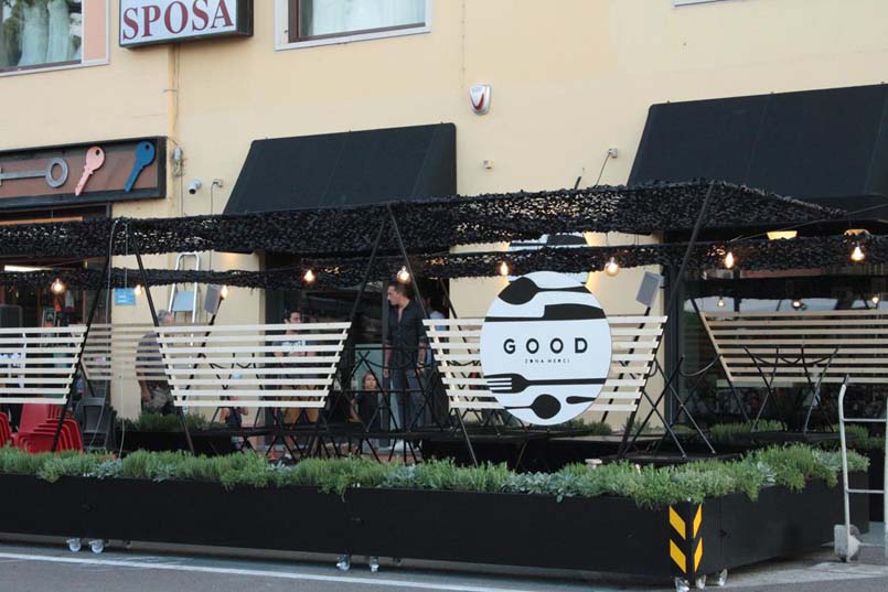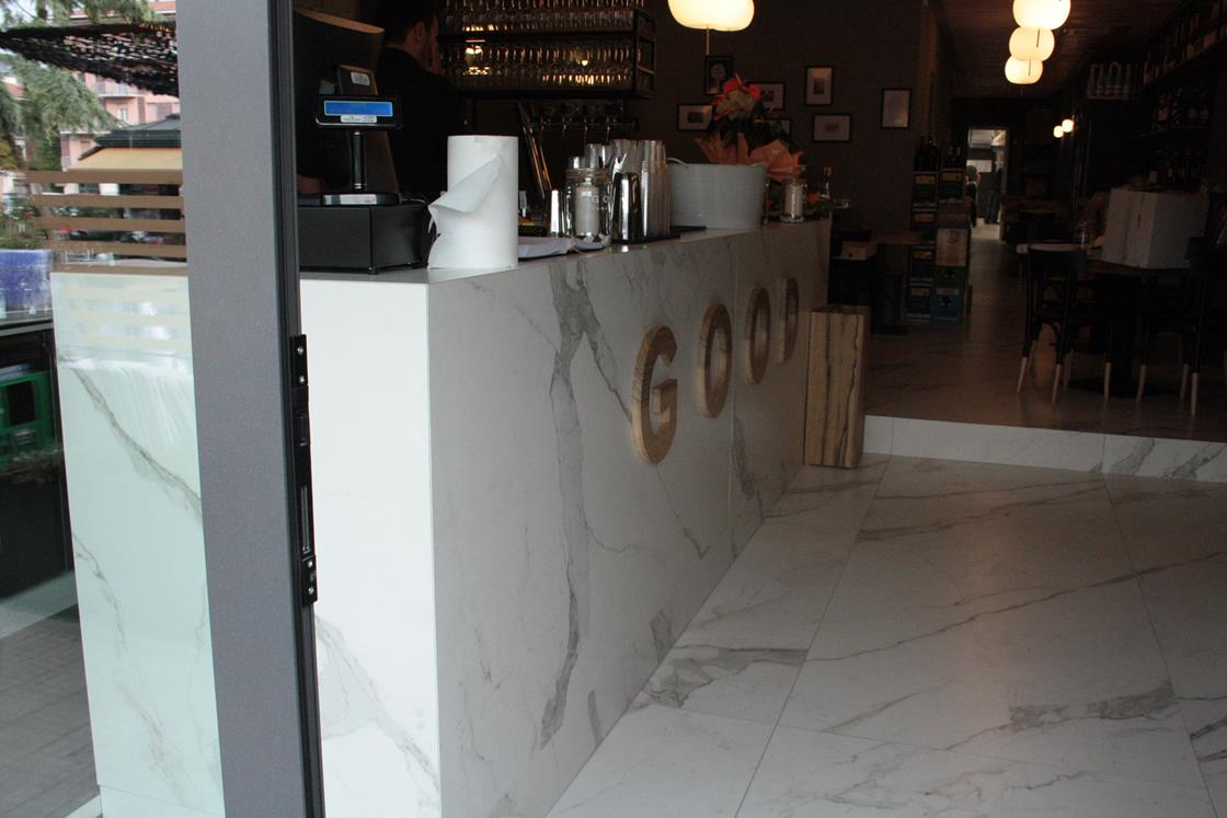 Le lastre ultrasottili Slimtech di Lea Ceramiche caratterizzano il ristorante Good Zona Merci, nuova apertura nel centro di Maranello. Dai pavimenti ai rivestimenti dei bagni, passando attraverso elementi d’arredo su disegno, lo spazio mette in mostra i possibili impieghi del prodotto ceramico sia nella dimensione architettonica che negli arredi.