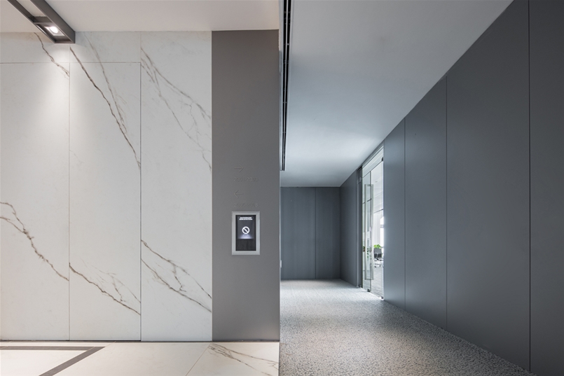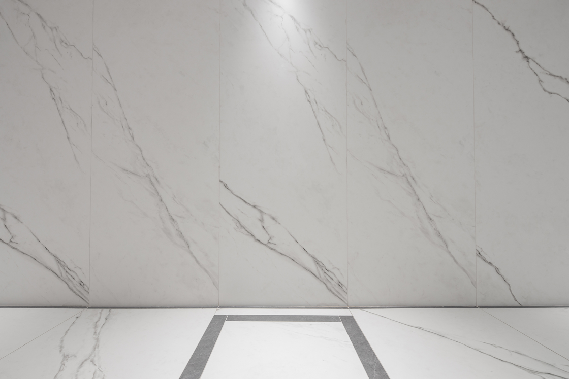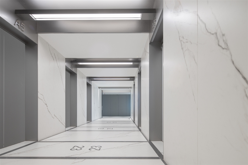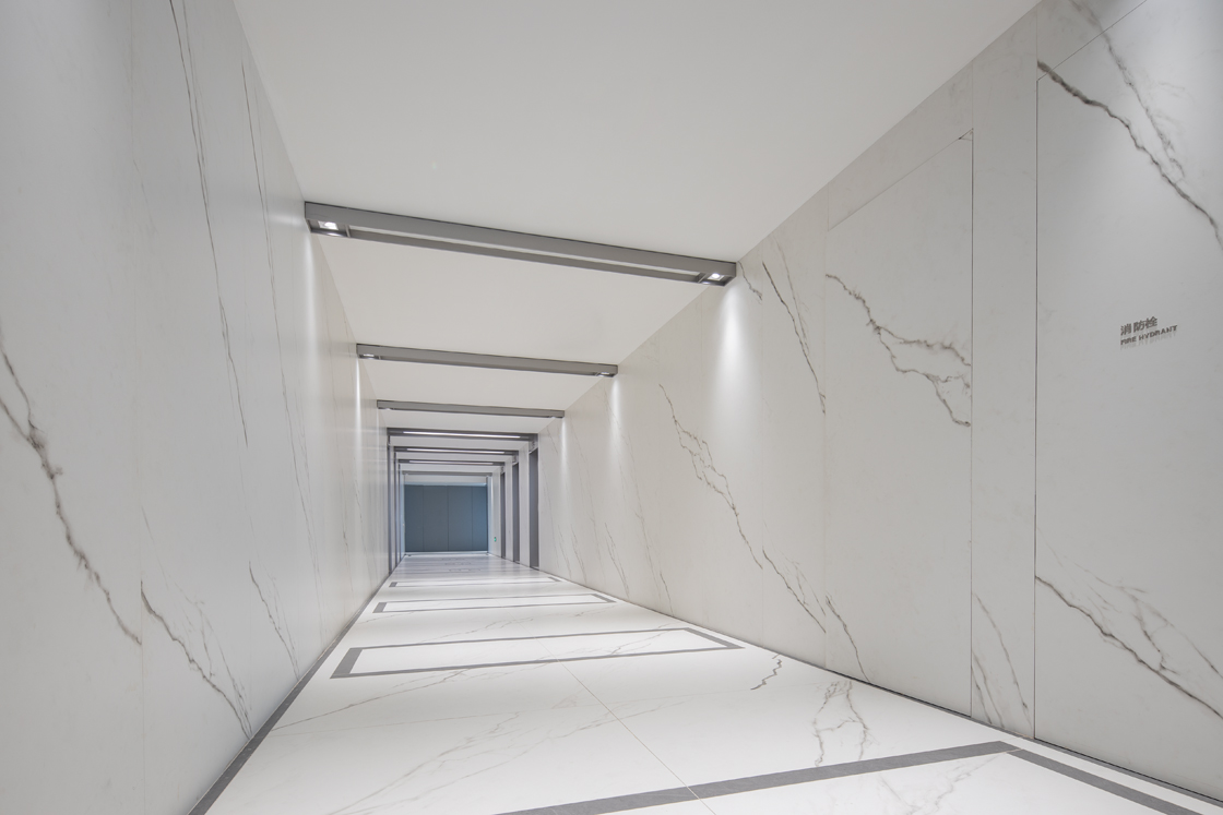 Per il rivestimento dei corridoi di ben 59 piani, lo studio di progettazione RAD con sede a Hong Kong autore del progetto, ha selezionato la collezione Timeless Marble Slimtech di Lea Ceramiche. Nella versione Statuario White le imponenti lastre di 3m x 1m solcano le superfici con la loro estetica contemporanea. Le leggere venature sul bianco candido dei fondi, conferiscono luce e rendono ariosi gli spazi di attraversamento dell’edificio, percorsi di collegamento che passano per lo più inosservati, ma che qui si trasformano in passaggi con una propria distintività.