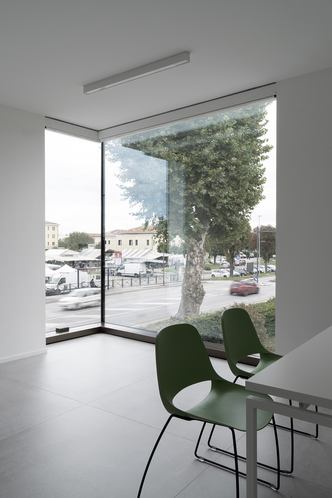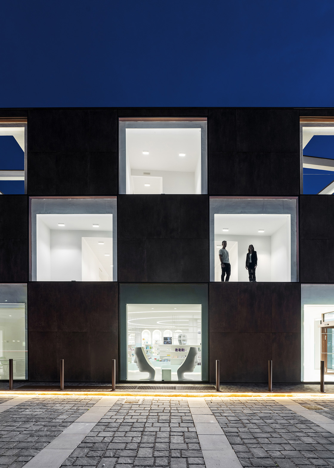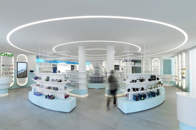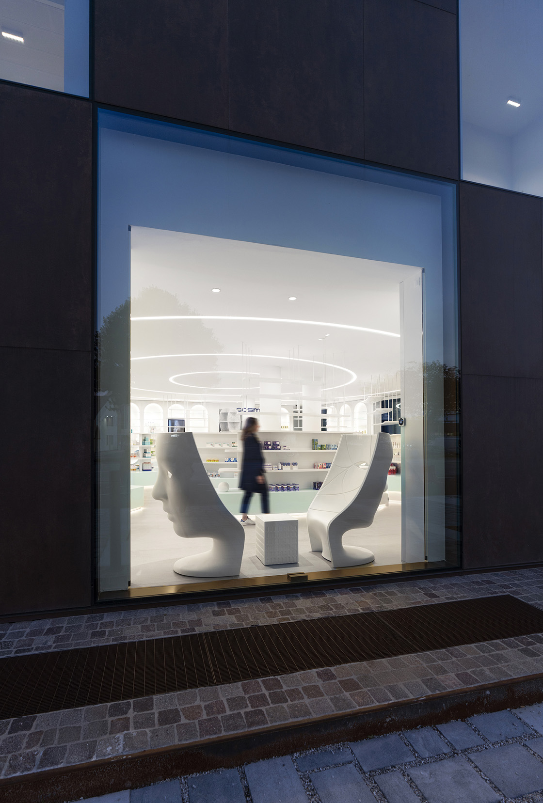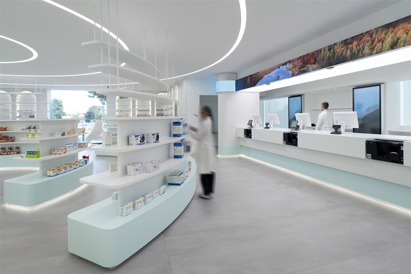 Firmato da Tecnostudio Padova, il complesso si articola su più livelli e ospita ambulatori, aree diagnostiche e una farmacia. Proprio quest’ultima, la Farmacia Foscarin Ferro, rappresenta il cuore concettuale del progetto: collocata al piano terra e firmata da Novembre Studio, è concepita come uno spazio relazionale in cui cura, consulenza e benessere trovano espressione in un’esperienza spaziale immersiva e coinvolgente.