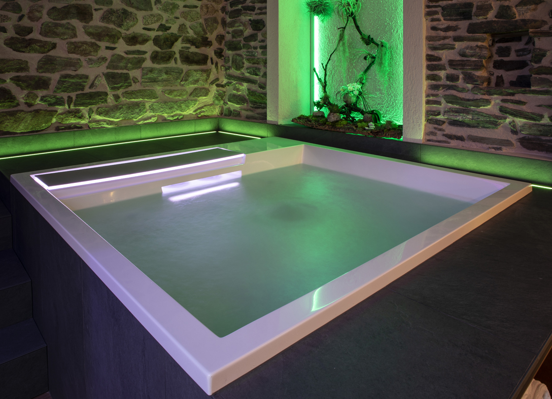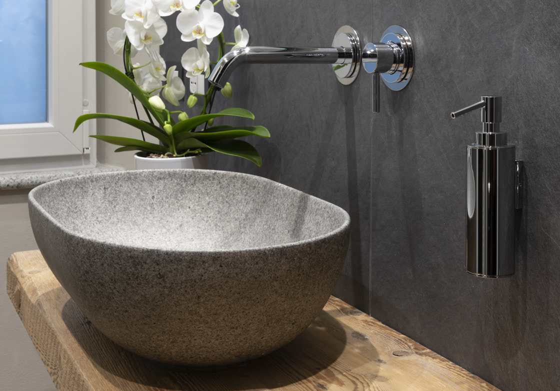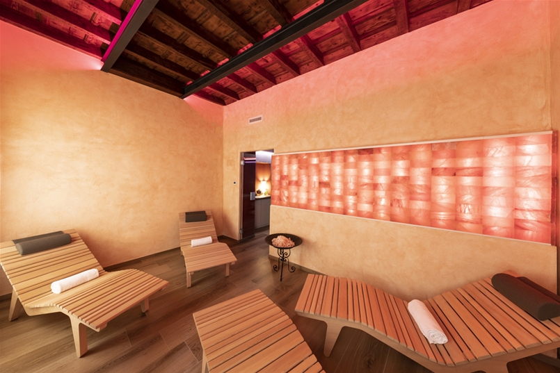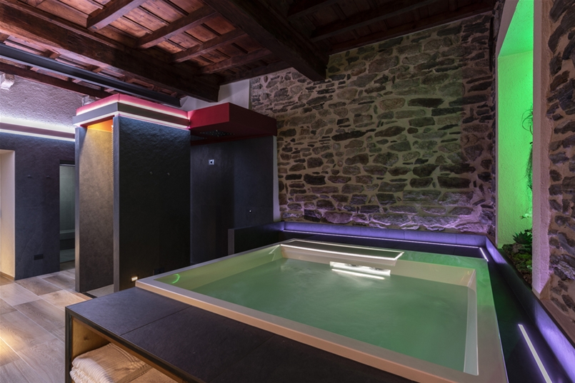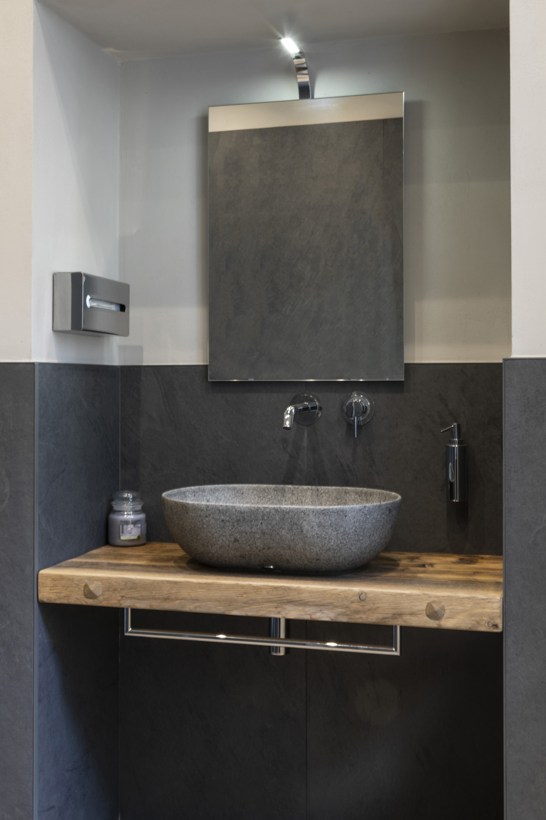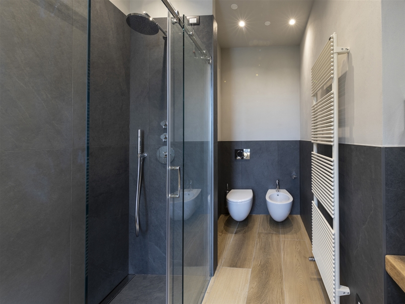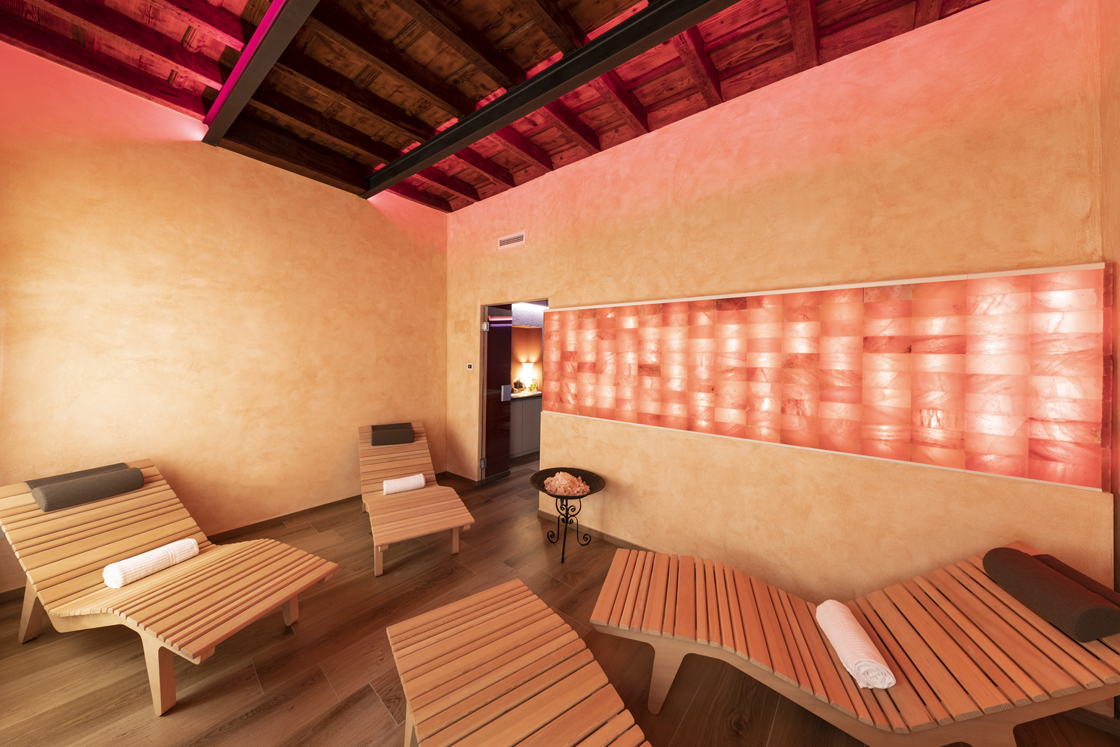 Oltre a Bio Select, è Waterfall di Lea Ceramiche a rivestire alcune aree della zona wellness. Attraverso la fedele riproduzione dell’ardesia, la collezione registra il movimento delle venature e le irregolarità tipiche di una pietra a spacco. Il realismo dei disegni sui grandi moduli ceramici esprime la ruvida autenticità della pietra, i segni del tempo impressi nella materia fanno da sfondo allo spazio perfettamente disegnato, forma e funzione coincidono. Bio Select e Waterfall, come tutti i materiali di Lea Ceramiche e i suoi sistemi di produzione, soddisfano criteri sostenibili; sono salubri perché protetti da Protect®, la tecnologia che impedisce la proliferazione dei batteri; sono resistenti e facili da pulire. Grazie alla loro superficie non porosa, il materiale ceramico ostacola il deposito di sporco e la proliferazione di muffe, risultando così ideale per essere posato in ambienti a elevata frequenza.