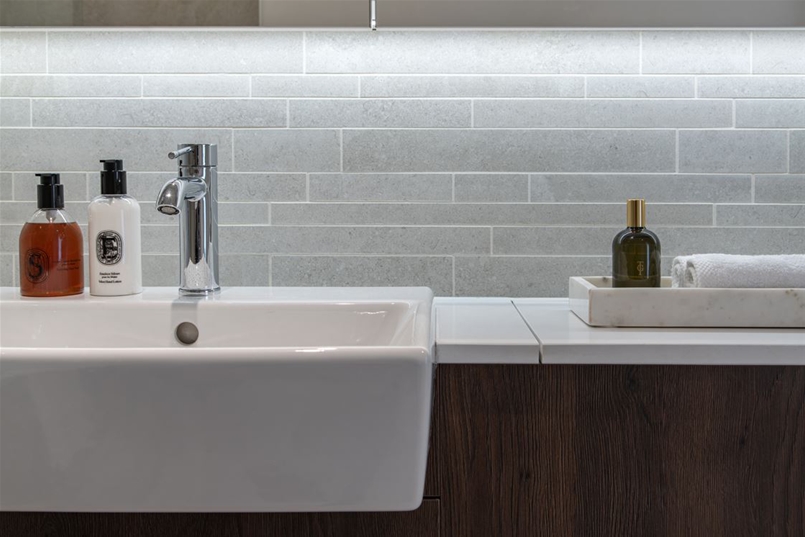 Squire & Partners, lo studio che ha progettato il Landmark Pinnacle, ha optato per l’estetica ad altissima qualità di Lea Ceramiche per rivestire i servizi degli appartamenti e delle aree comuni della struttura. Per coprire ben 17.500 metri quadri di superfici, è stata scelta la collezione Cliffstone, interpretazione di una pietra rocciosa inesistente in natura e reinventata con creatività e know how da Lea Ceramiche. Per conferire una linea delicata e luminosa, è stata selezionata dai progettisti la nuance White Dover integrata della decorazione Muretto per apportare una nota creativa nella progettazione degli spazi. Il risultato in ogni bagno è indubbiamente all’altezza di un edificio così futuristico, originale e confortevole grazie, inoltre, all’utilizzo di materiali garantiti della protezione antibatterica Protect®, un’esclusiva tecnologia agli ioni d’argento che elimina il 99,9% dei batteri dalla superficie, 24h/24, per la massima sicurezza degli spazi e degli ospiti che li accolgono.