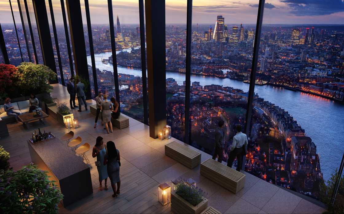 Con i suoi settantacinque piani, il grandioso Landmark Pinnacle è il grattacielo residenziale più alto d’Europa. Si staglia sul cielo di Londra sulla riva del Tamigi, precisamente all’estremità occidentale del South West India Dock, proprio accanto a The Landmark, i quattro enormi palazzi residenziali di 44 piani disposti attorno a una grande corte con negozi, bar e palmizi. Accomunati dai tratti architettonici, The Landmark e il Landmark Pinnacle sono collegati da vie pedonali affacciate sul fiume. Proprio il Landmark Pinnacle colpisce lo sguardo per la sua morfologia rettilinea creando un’inconfondibile skyline coerente con la terminazione del South West India. Una facciata con doppi vetri fornisce una pelle continua dietro la quale si celano verande private in ogni appartamento e tre piani di spazi comuni che includono un giardino pensile, una palestra, sale da pranzo e aree giochi per bambini. Due terrazze sul tetto a doppia altezza coronano l'edificio, fungendo da indicatore luminoso durante la notte.