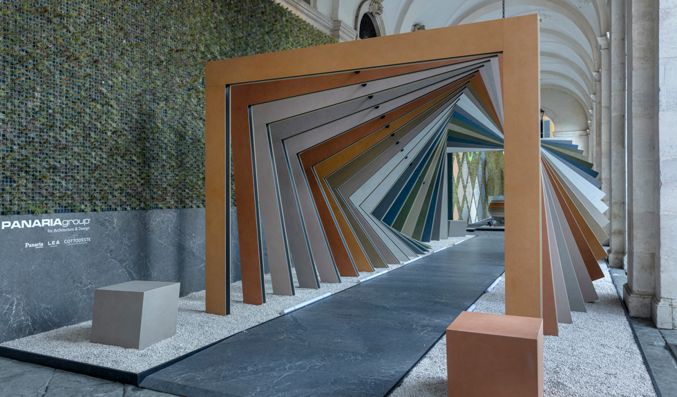 Per presentare al meglio le lastre ceramiche ultrasottili, materiale versatile e resistente, espressione di una tecnologia che ha rivoluzionato il processo produttivo per ottenere una soluzione altamente sostenibile, in occasione di una rassegna importante come il Landscape Festival, è stata realizzata un’installazione fruibile presso i portici della Biblioteca Civica Angelo Mai in Piazza Vecchia. Il progetto si ispira all’architettura organica, in cui l’azione umana si integra armoniosamente con l’ambiente circostante: un tunnel, dalle geometrie definite e vibranti, invita ad una indagine della materia ceramica fin nella sua essenza, con un obiettivo centrale: la sostenibilità. Alcuni vasi giganti, realizzati in grès porcellanato, rappresentano architetture e edifici con un cuore sostenibile: le piante di tillandsia che emergono dai grandi contenitori. Lo spazio, inoltre, sarà anche un luogo in cui sostare per apprezzare il piacere di un ambiente pensato secondo la scala dell’attenzione all’uomo e al pianeta.