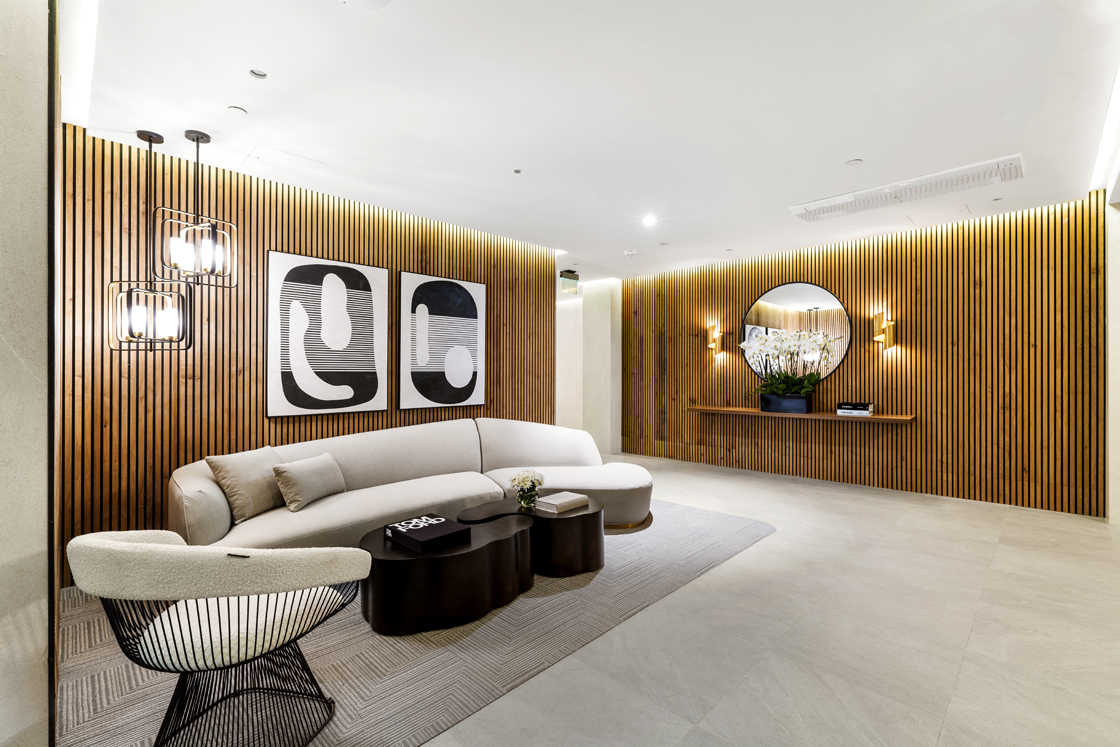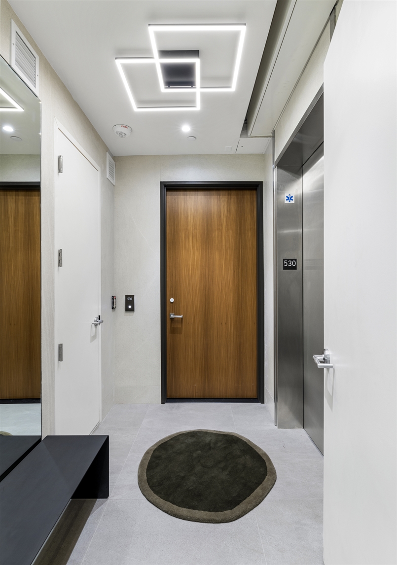 In particolare, per l’ingresso e la lobby del residence è stata utilizzata la collezione effetto pietra Nextone della proposta 3-Tech Project, ideale per rispondere a tutte le possibili destinazioni d’uso. Potendo contare su differenti prestazioni tecniche raccolte sotto un’unica estetica, le collezioni in 3-Tech Project consentono di ottenere continuità stilistica e performance tecnica mediante un solo codice estetico declinato in spessori differenti, per soddisfare le esigenze funzionali di ogni progetto: Slimtech, le grandi lastre sottili di qualità superiore e 100% Carbon Neutral grazie a una forte riduzione delle emissioni durante la filiera produttiva e al progetto di compensazione THINk ZERO per l’abbattimento della CO2 nelle città più inquinate; il grès porcellanato tutta massa a spessore tradizionale; L2, il grès in 20mm di spessore progettato per soluzioni outdoor.