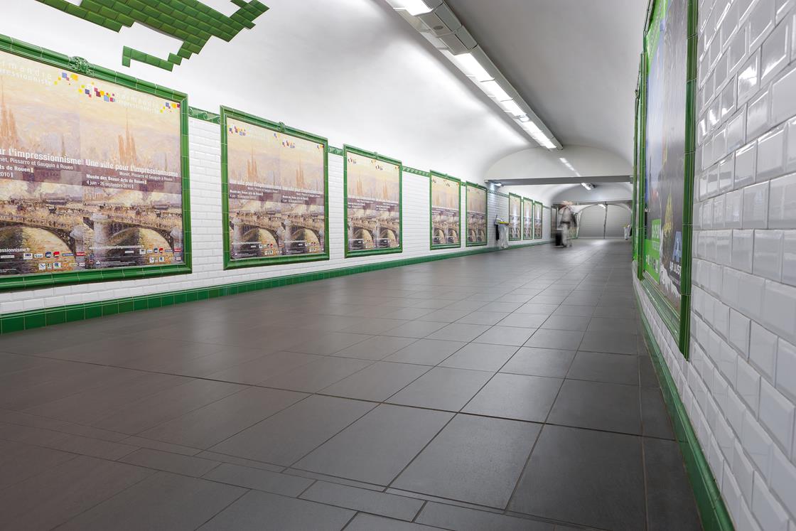 Nel progetto della rete metropolitana della Métro de Paris, parte dei pavimenti sono stati rivestiti con materiali di Lea Ceramiche. La rete metropolitana parigina, la cui prima linea fu aperta nel lontano 1900 in occasione dell’Esposizione Universale, conta oggi 16 linee perlopiù sotterranee e ben 303 stazioni. È la terza metropolitana per estensione in Europa Occidentale dopo quelle di Londra e Madrid. Le stazioni, in genere con soffitto a volta, presentano una decorazione concepita nel 1900 e rimasta per larga parte inalterata. Naturalmente nel corso degli anni ha subito diversi restyling: a partire dagli anni 1950, ad esempio, il totale rinnovamento dei treni ma il processo di sviluppo e ammodernamento prosegue a tutt’oggi. Tra i rivestimenti della pavimentazione spicca Basaltina Stone Project, una collezione che prende ispirazione dalla pietra lavica basaltina. Declinata nelle tonalità del grigio, riporta sulla superficie minuscoli puntini neri, caratteristica principale della pietra naturale riprodotta sul gres porcellanato in maniera iper realistica. Nella Metropolitana di Parigi, Basaltina Stone Project disegna gli spazi in perfetta sintonia con le pareti, dosando minimalismo di fondo con funzionalità e durevolezza e conferendo un carattere grintoso e distintivo.