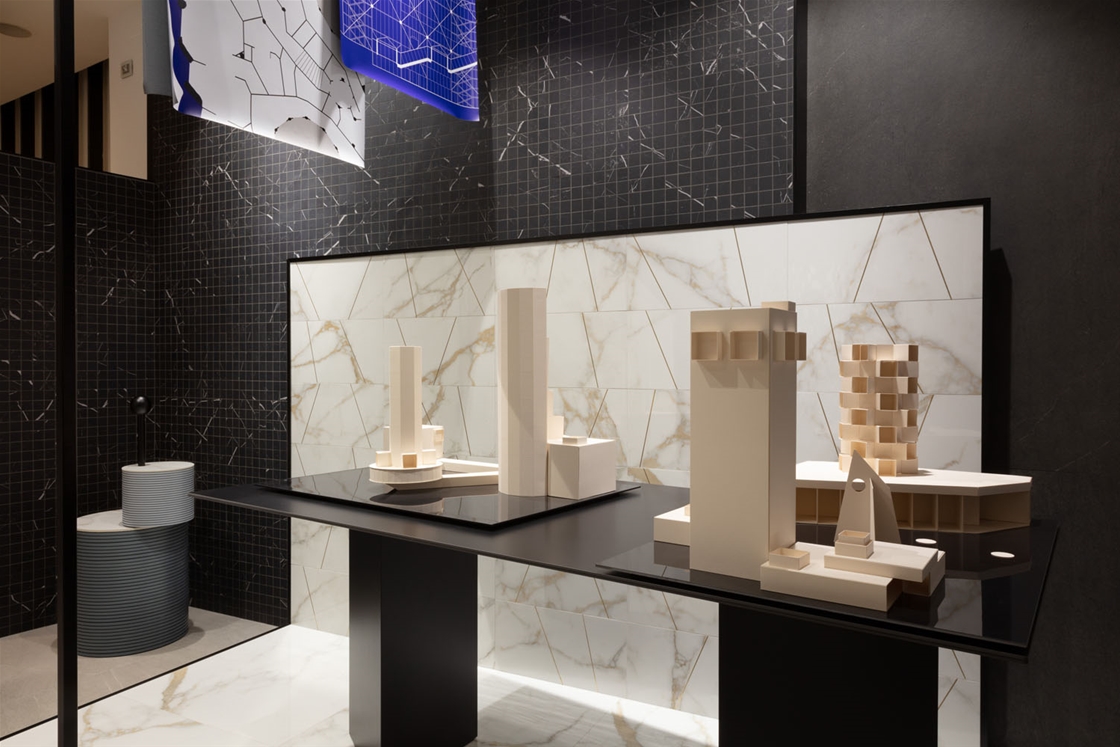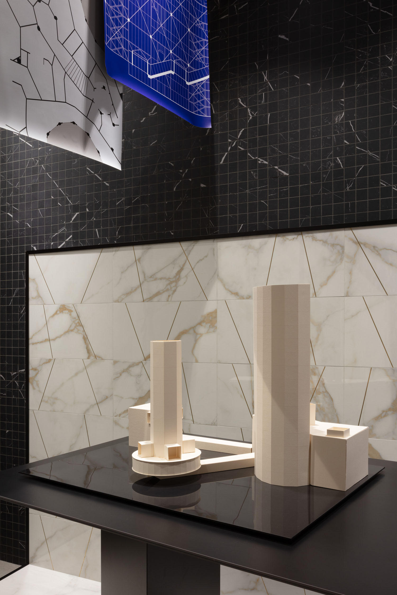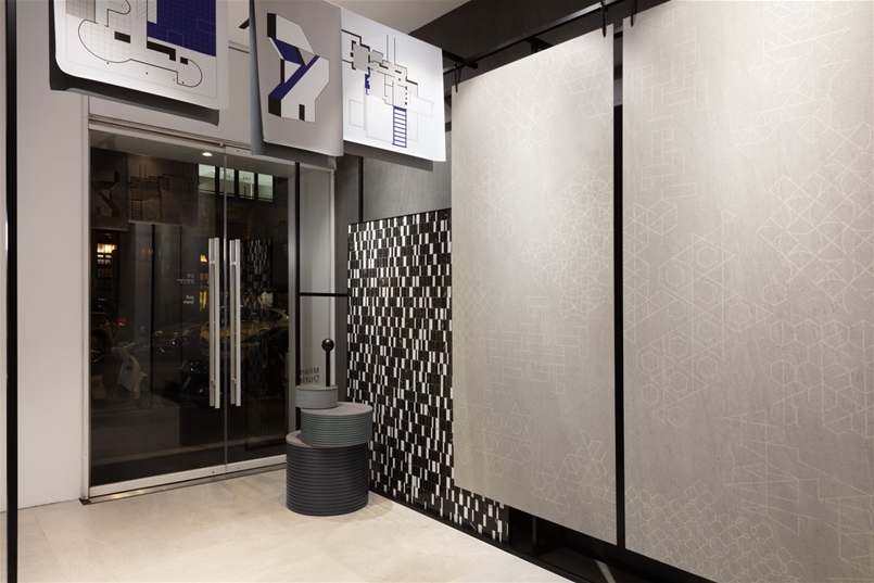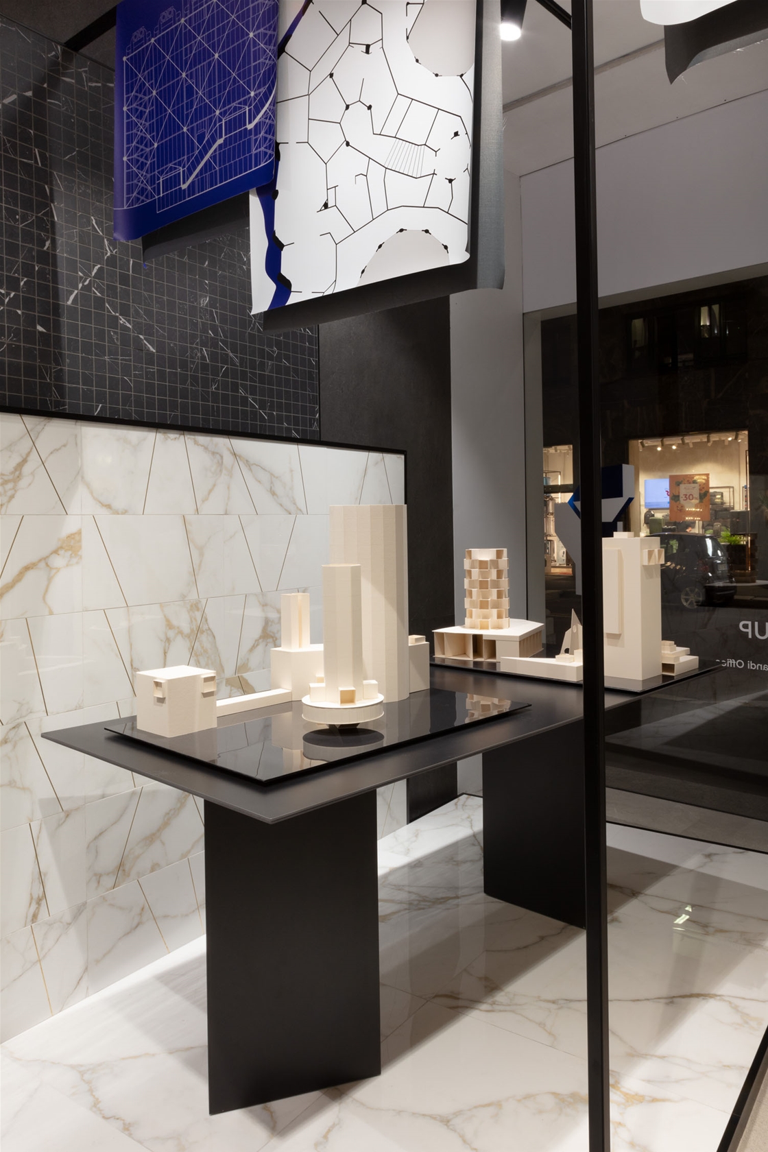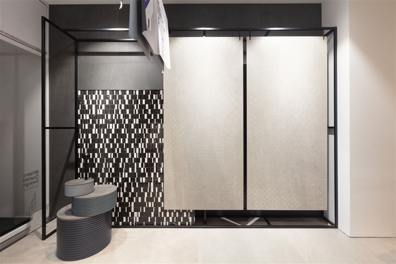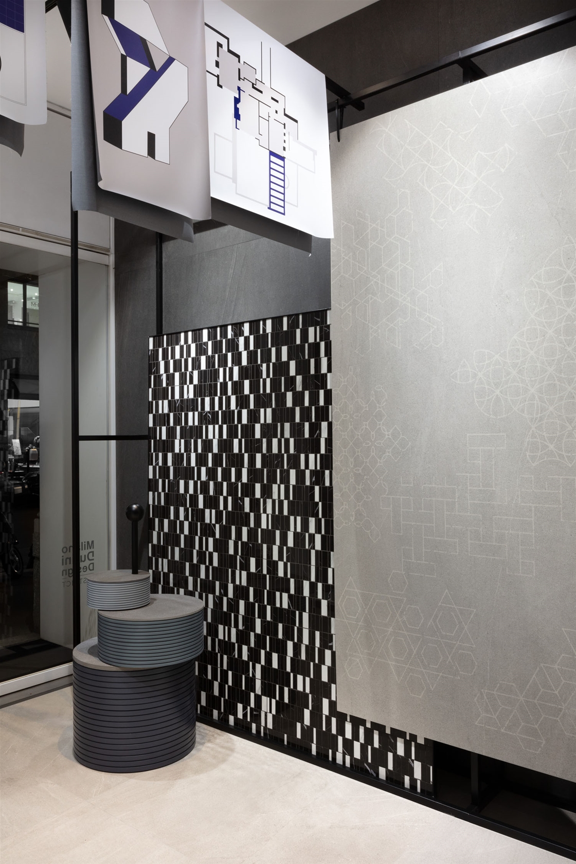 Attraverso la personale lettura di Diego Grandi, le collezioni Nextone e Noblesse trasformano lo spazio di via Durini in uno nuovo scenografico set: nel dialogare tra loro, evidenziano la potenza espressiva della materia ceramica e ne suggeriscono nuove forme d’uso sia nell’interior che in architettura. Per il progettista, la possibilità di poter spaziare all’interno di un’unica collezione di spessori, formati e texture diverse, garantisce libertà di azione ed un valido supporto anche in termini tecnici, per poter affrontare qualsiasi tipo di progetto.