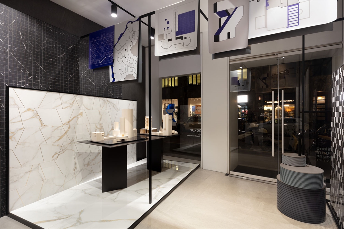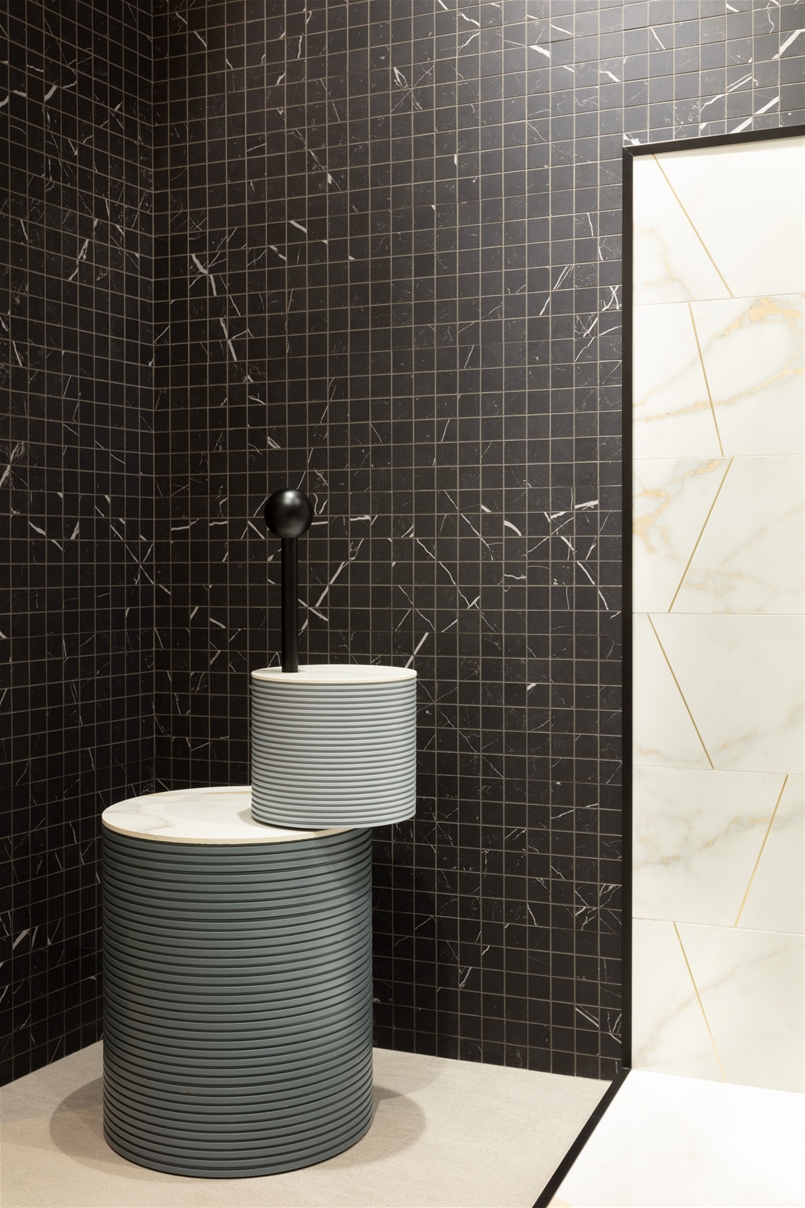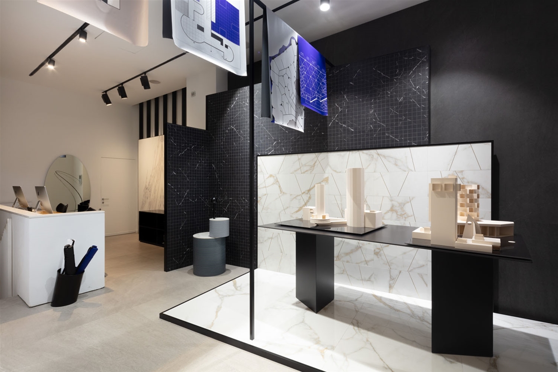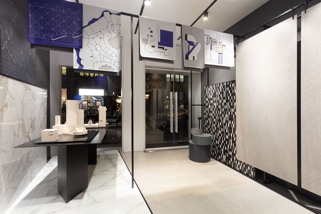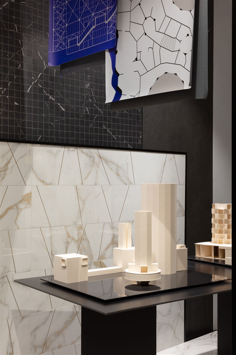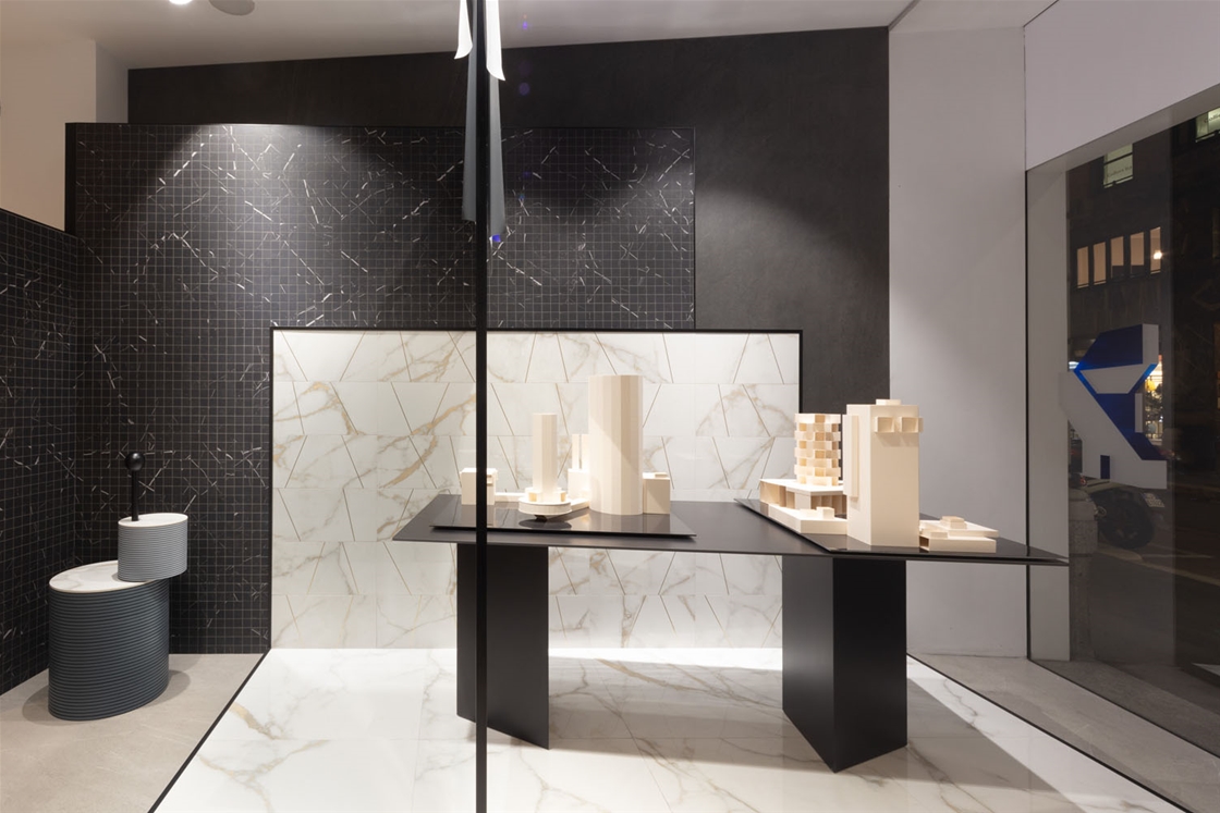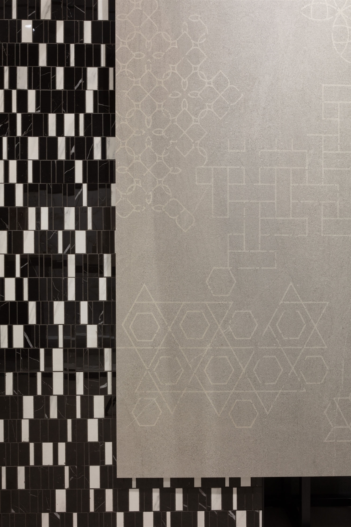 Attraverso la personale lettura di Diego Grandi, le collezioni Nextone e Noblesse trasformano lo spazio di via Durini in uno nuovo scenografico set: nel dialogare tra loro, evidenziano la potenza espressiva della materia ceramica e ne suggeriscono nuove forme d’uso sia nell’interior che in architettura. Per il progettista, la possibilità di poter spaziare all’interno di un’unica collezione di spessori, formati e texture diverse, garantisce libertà di azione ed un valido supporto anche in termini tecnici, per poter affrontare qualsiasi tipo di progetto.