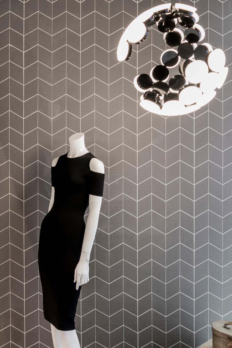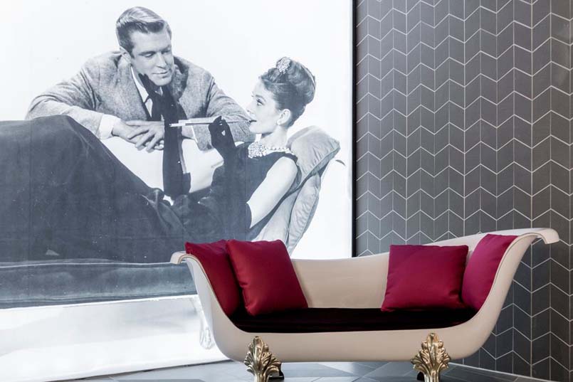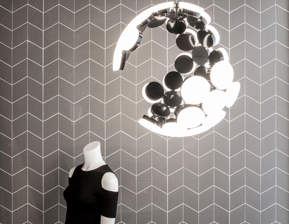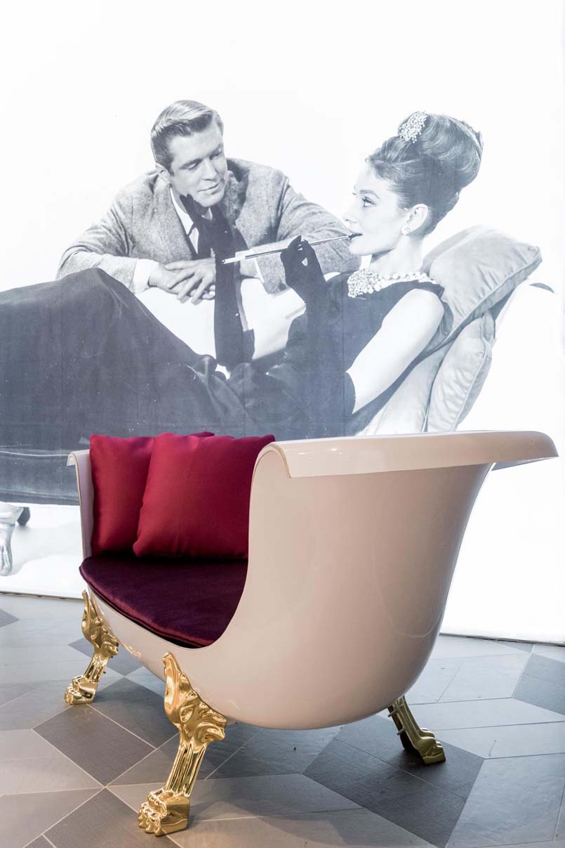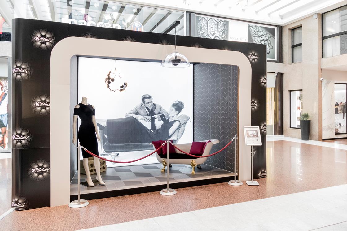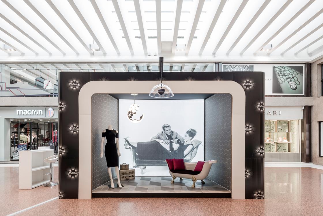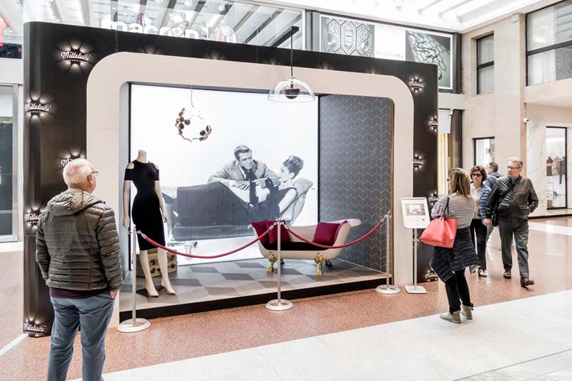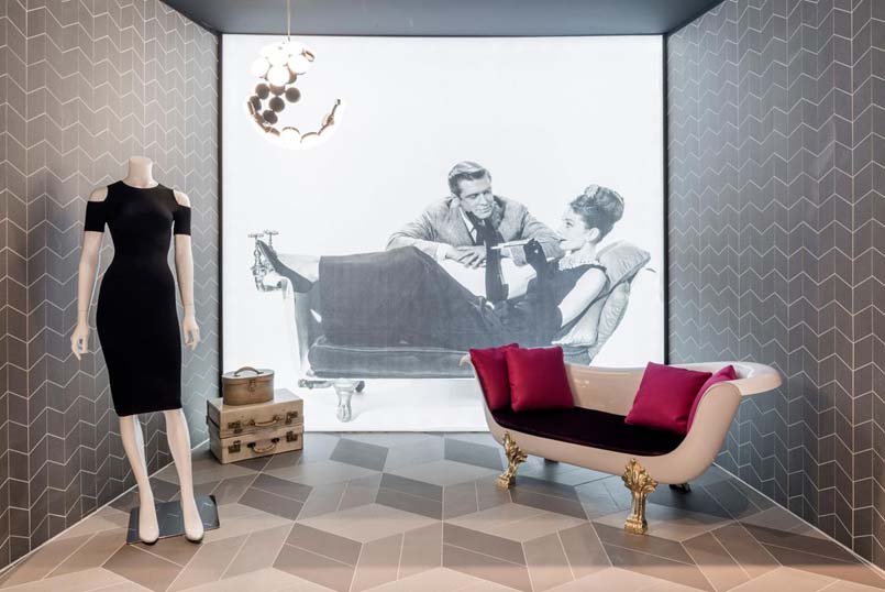 - Trame, la serie che armonizza perfettamente tra loro cromie, materiali e forme, è stata impiegata nell’allestimento ispirato al film “Colazione da Tiffany”, nel quadrivio di Galleria Cavour a Bologna. Qui sono state applicate le composizioni a moduli Twist e Arrow, rispettivamente a pavimento e rivestimento.