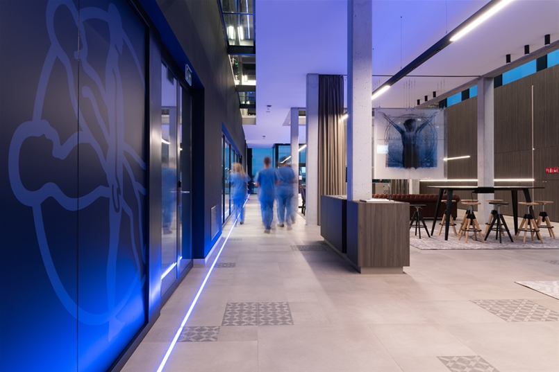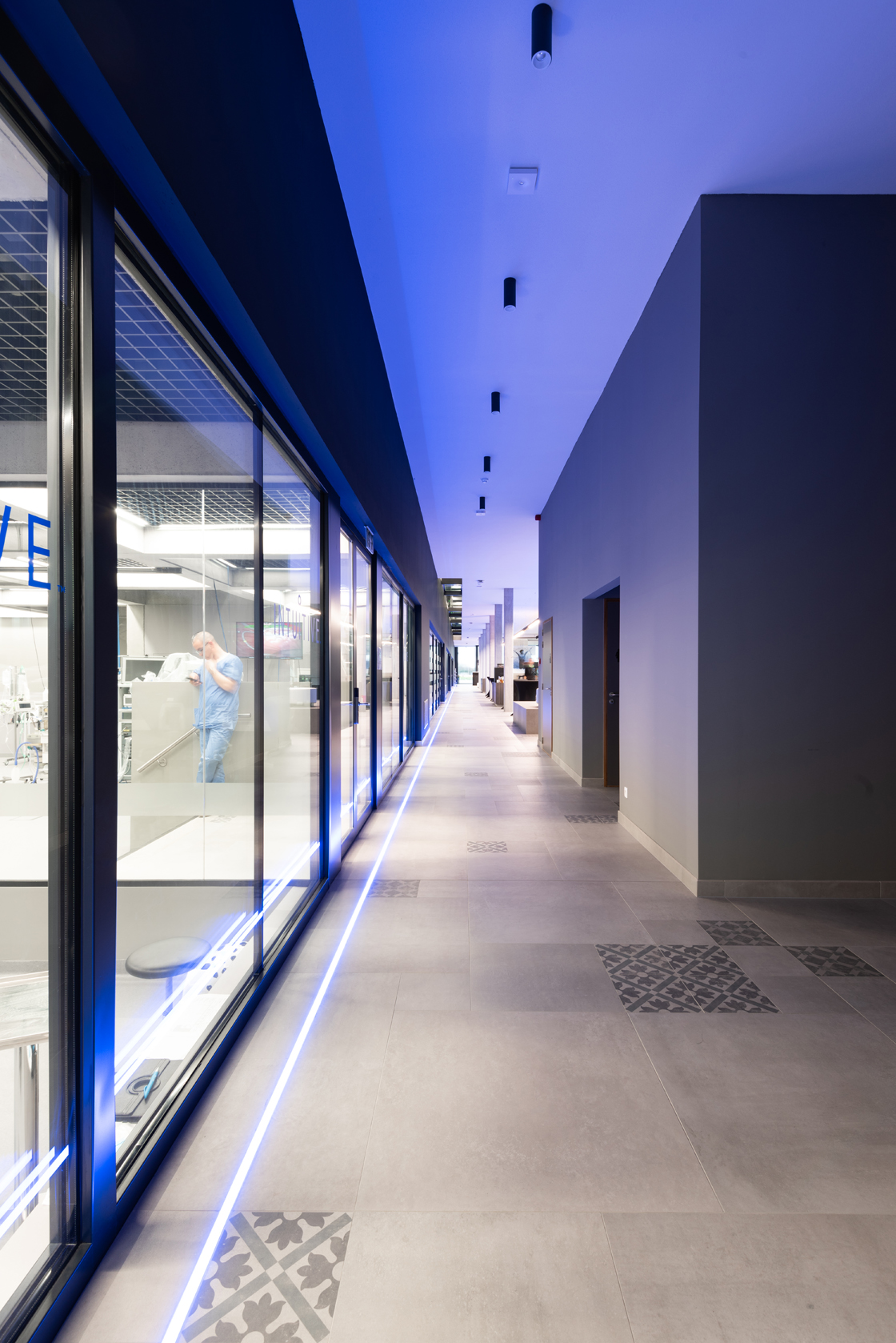 Un luogo sinonimo di innovazione e ricerca, che attira migliaia di chirurghi di tutto il mondo e che ospita le tecnologie più evolute nel campo della chirurgia robotica. È l’Orsi Academy di Melle in Belgio, il più grande centro europeo di formazione del settore, recentemente ampliato con un nuovo campus. Lo spazio sapientemente suddiviso tra sale operatorie, sale riunioni, auditorium, ristorante e foyer, si sviluppa su una pianta di forma rettangolare ed è contraddistinto da elementi di facciata opachi e trasparenti a sottolineare e distinguere le diverse funzioni di ciascuna area. A partire dalle esigenze di riorganizzazione degli spazi, lo studio VK Architects&Engineers, autore del progetto, ha seguito criteri di sostenibilità e salubrità sia per lo sviluppo delle aree così come per la scelta dei materiali. Per il pavimento è stato selezionato District di Lea Ceramiche, una superficie ceramica che rimanda allo stile contemporaneo del cemento ma che si contraddistingue principalmente per la protezione antibatterica Protect®, una tecnologia brevettata in esclusiva con il colosso americano Microban® che garantisce l’eliminazione del 99% dei batteri 24 ore su 24. A base di ioni d’argento ed incorporata durante il processo di produzione, è sempre attiva, anche in assenza di luce. District di Lea Ceramiche restituisce superfici durevoli dalle elevate proprietà igieniche, ideali per luoghi in cui la sicurezza ha un ruolo di primaria importanza.