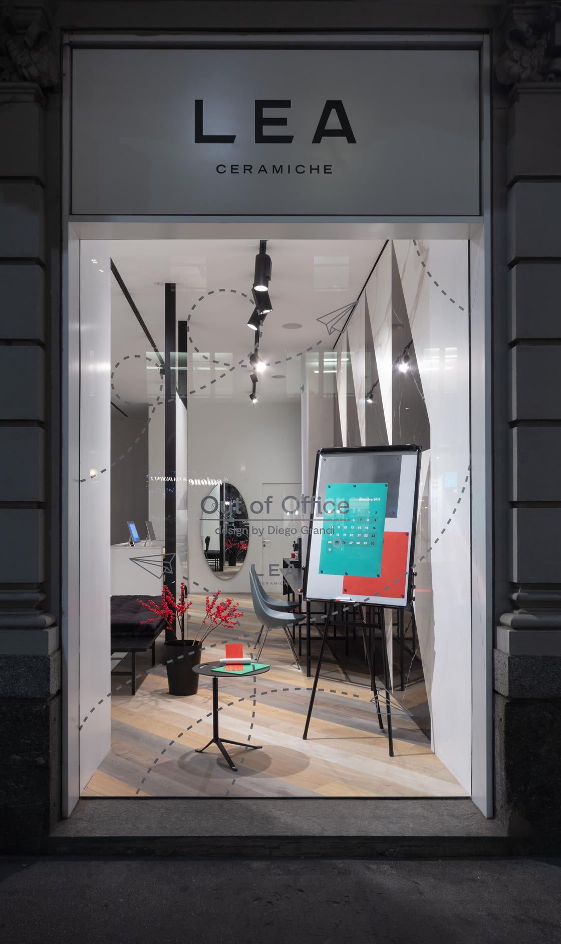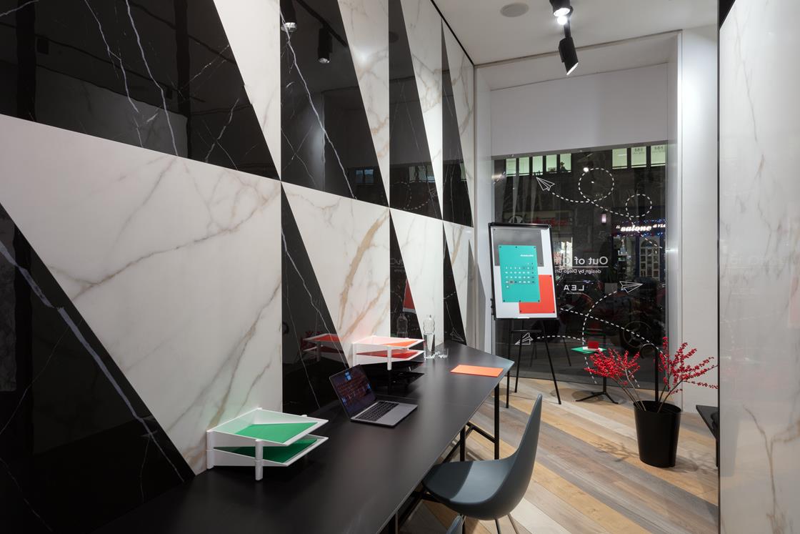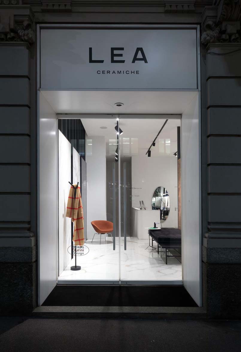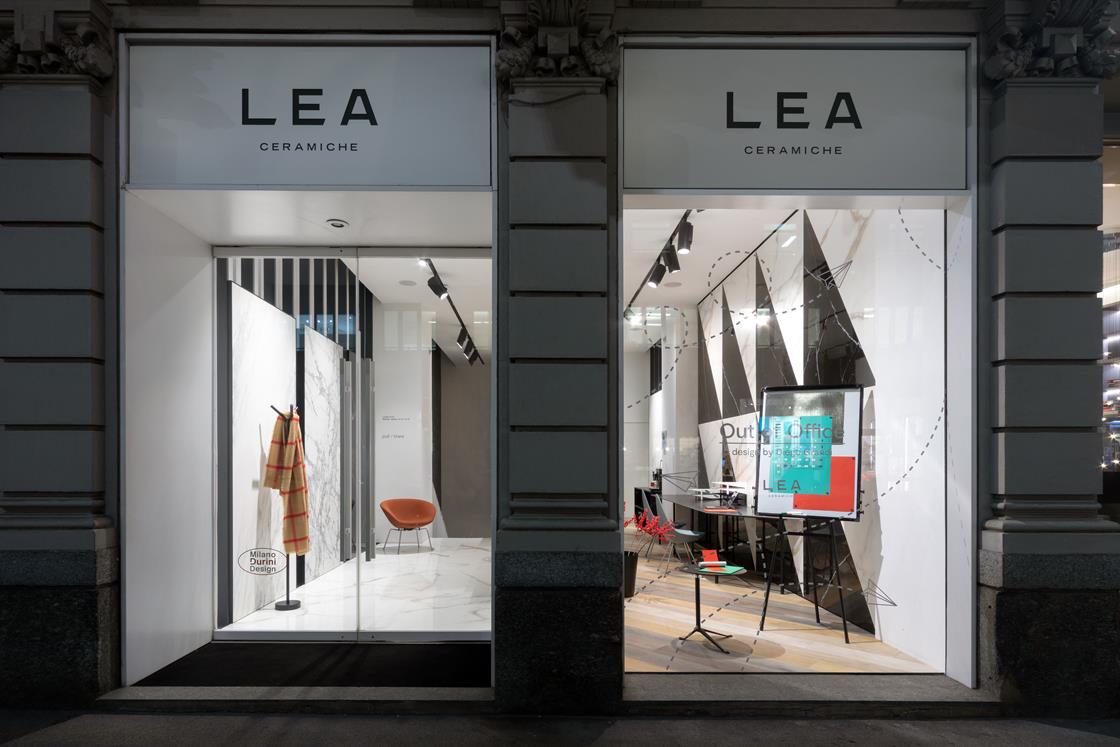 Firmata da Diego Grandi la nuova vetrina milanese di Lea Ceramiche Showroom  interpreta le ultime tendenze degli spazi di lavoro